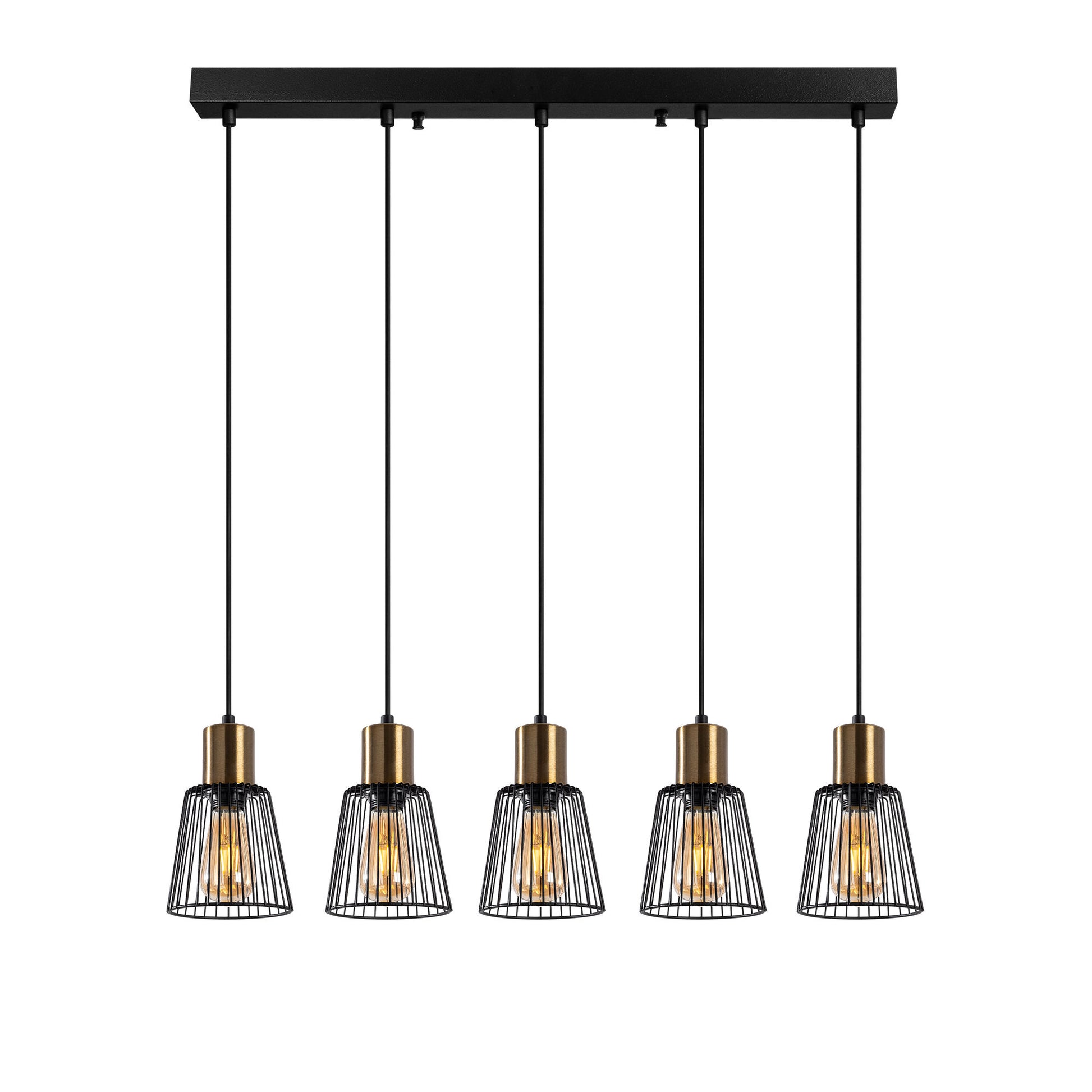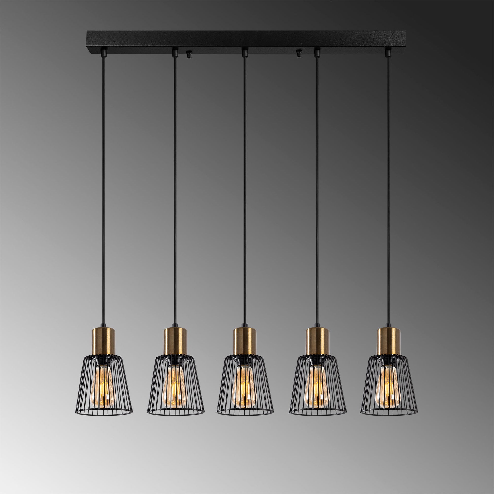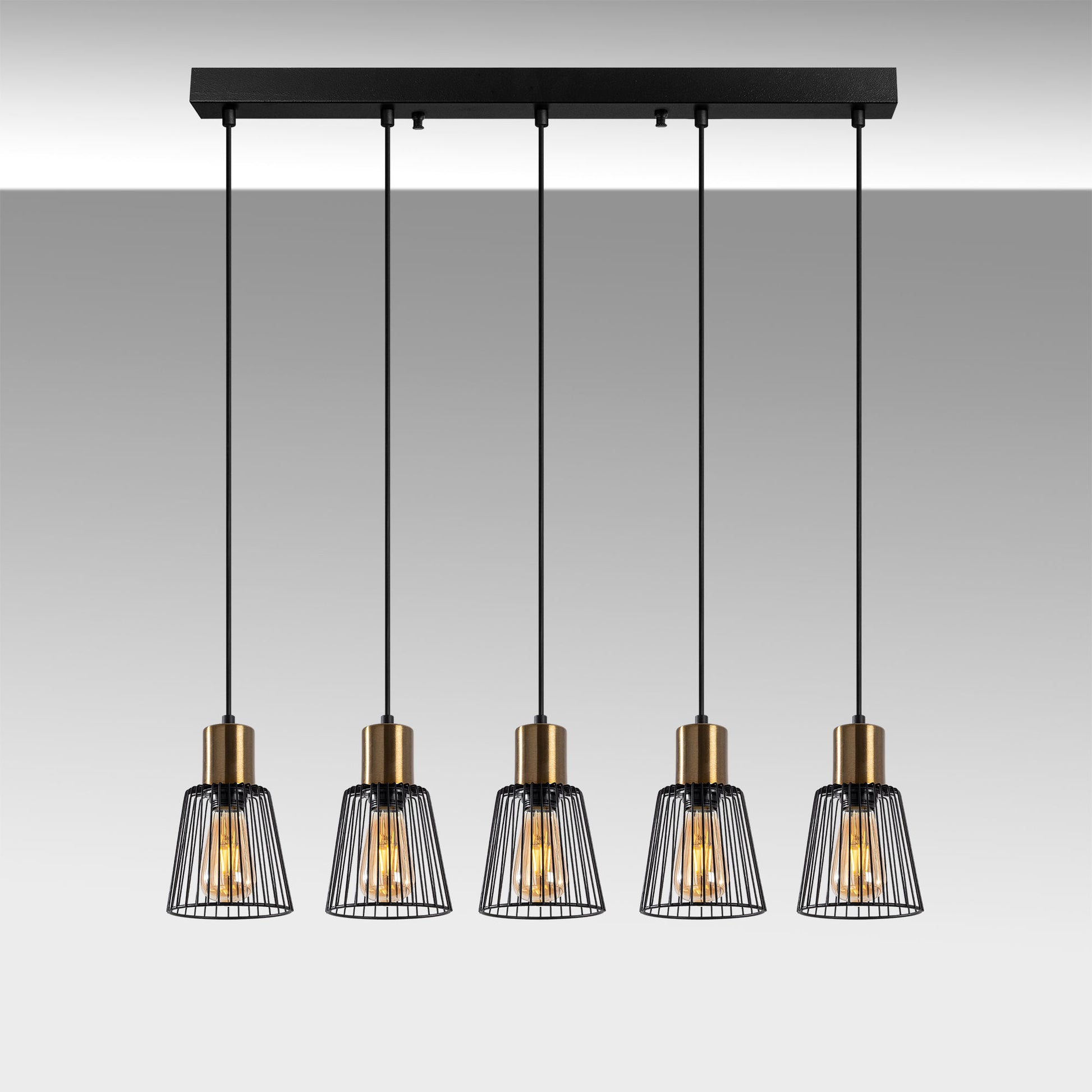 Candeeiro de Teto Industrial, Acabamento Preto e Antigo, 85 x 16 x 115 cm | Corpo em Metal, Altura Ajustável, 5 Soquetes E27 | Iluminação Moderna para Casa e Escritório