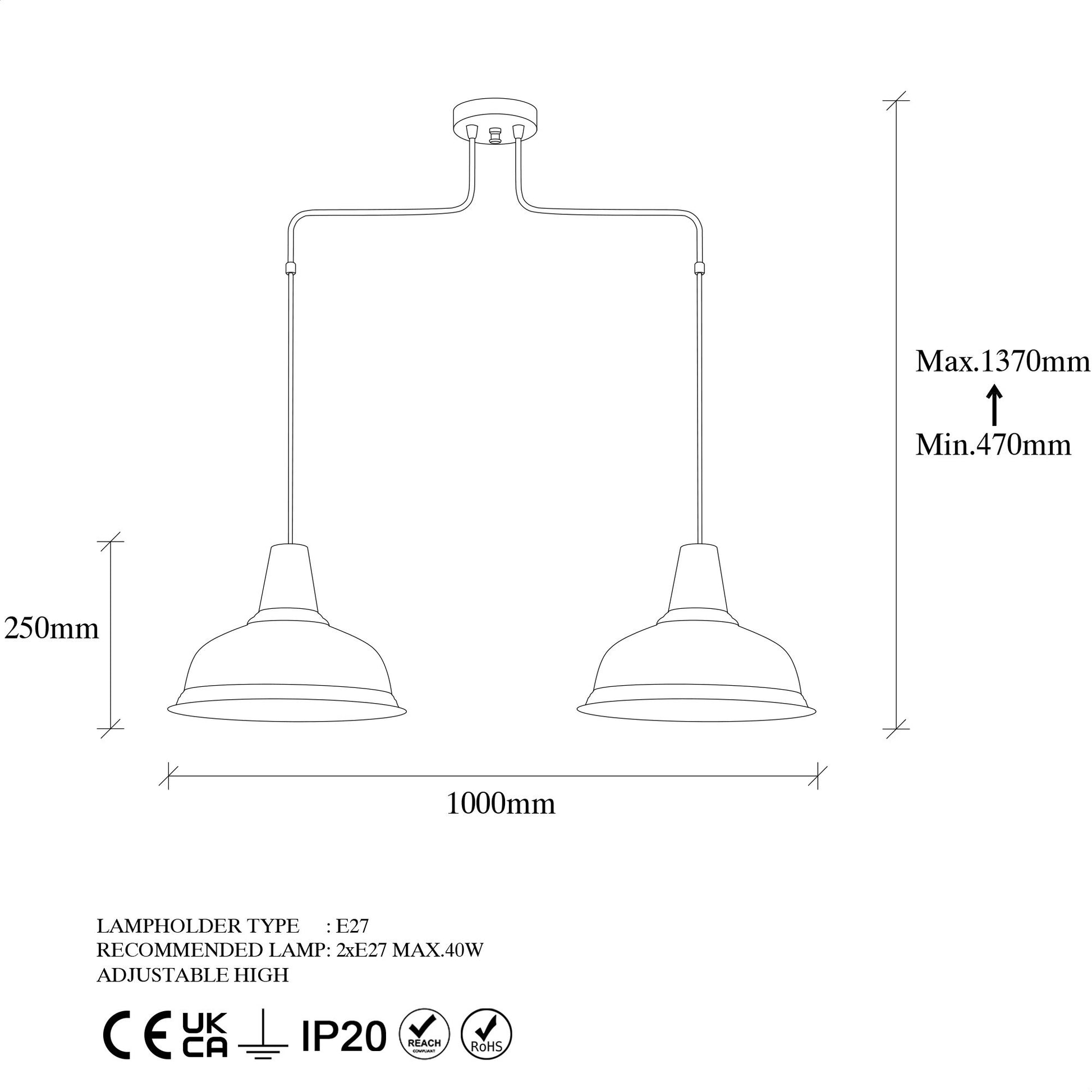 Candeeiro de Teto Elegante de Pátina, Corpo em Metal, 100 x 32 x 137 cm | Altura Ajustável, 2 x E27, Máx. 40 W | Design Escandinavo Moderno para Espaços Glamourosos