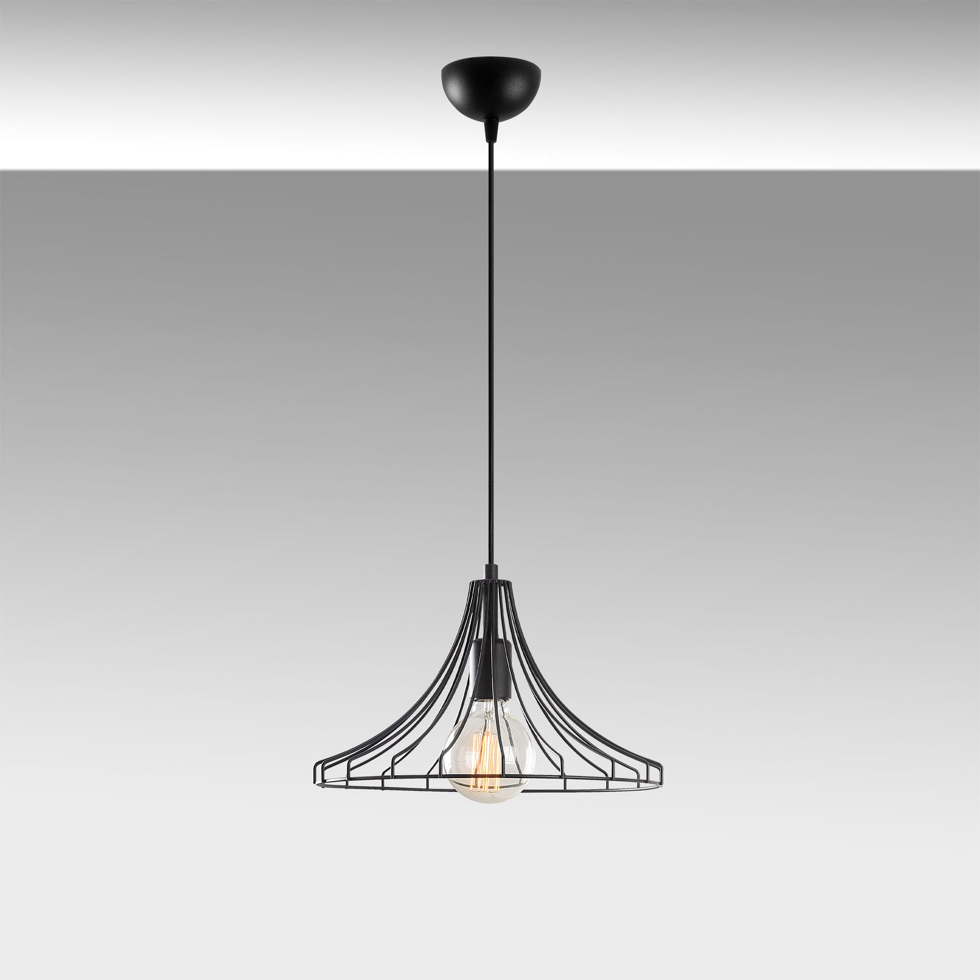 Candeeiro de Teto preto moderno, 37 cm de diâmetro, 126 cm de altura | Corpo de ferro, soquete E27, 40 W máx. | Design industrial e escandinavo elegante para decoração de casa