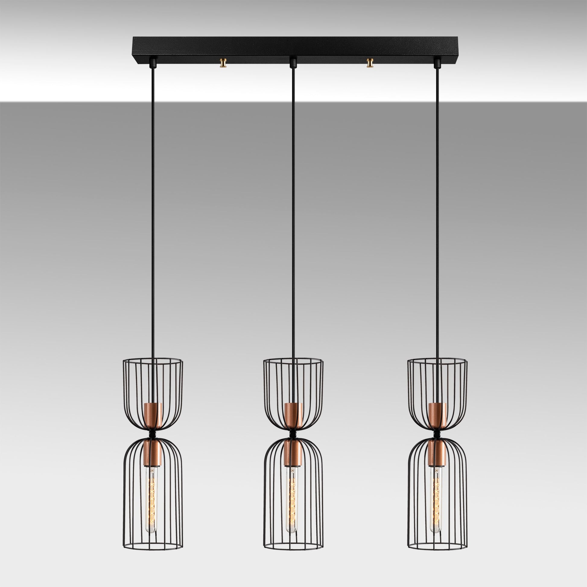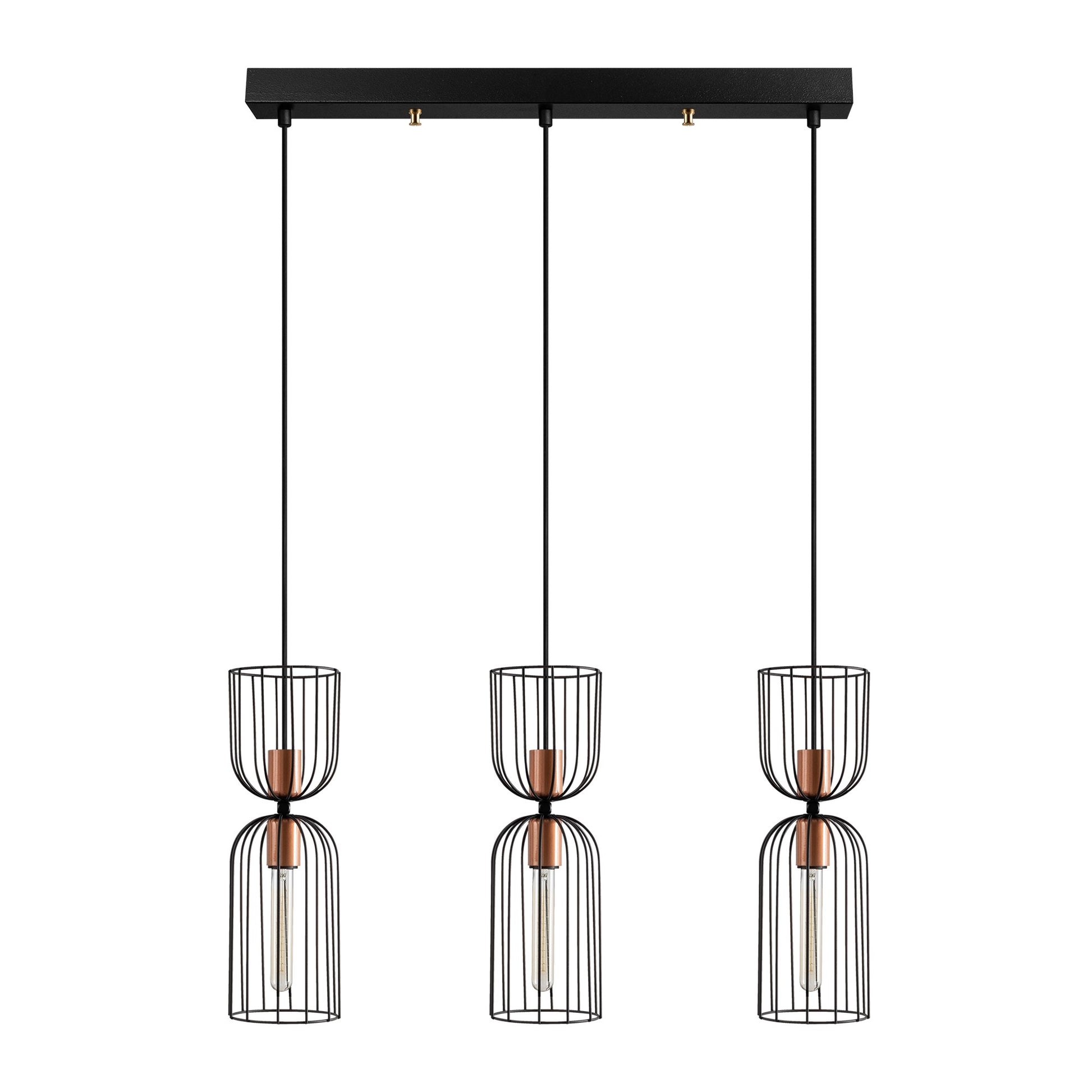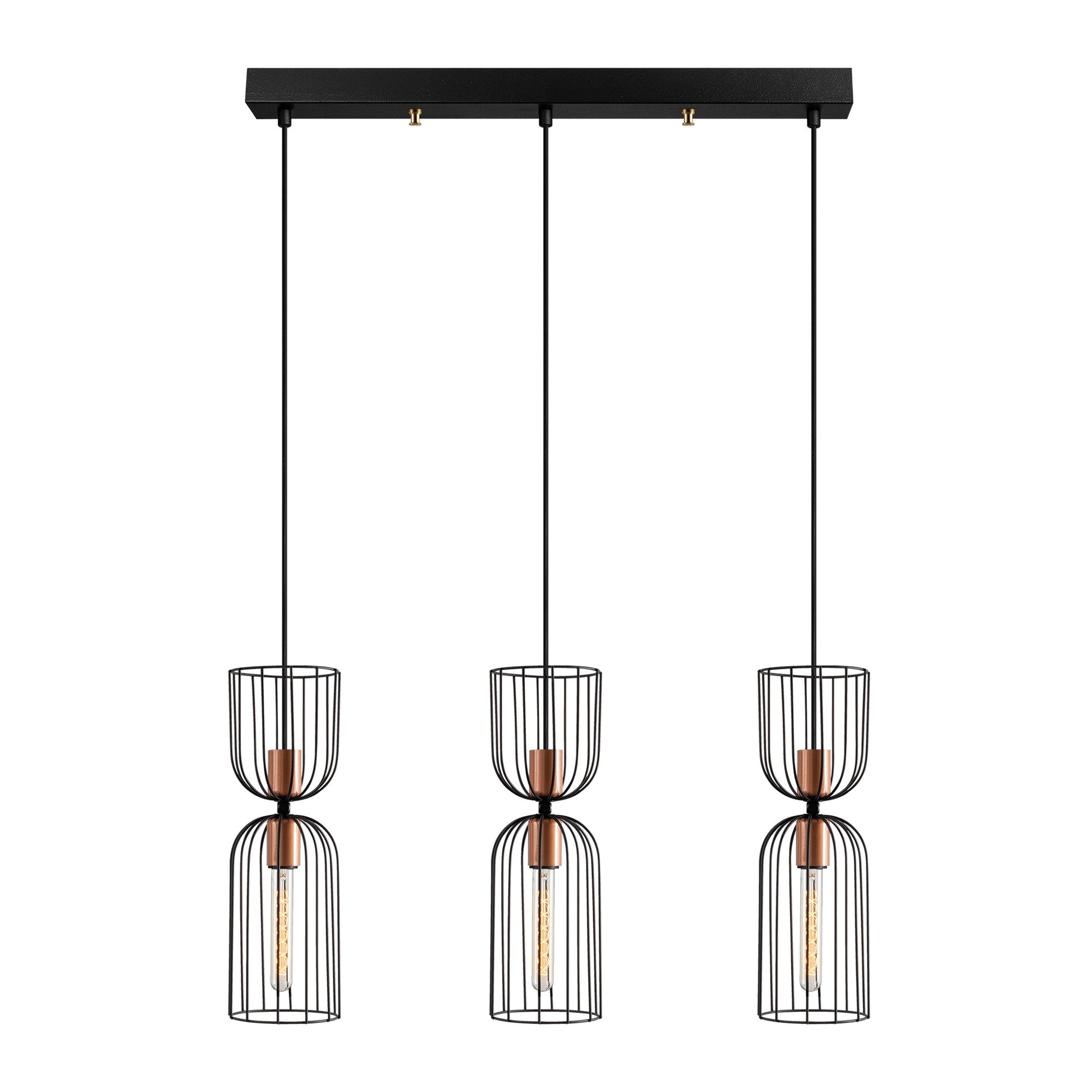 Candeeiro de Teto preto moderno, corpo de metal, 64 x 14 cm, altura 140 cm, ajustável, 3 x E27 máx. 40 W, design elegante para casa e escritório | Classificação IP20