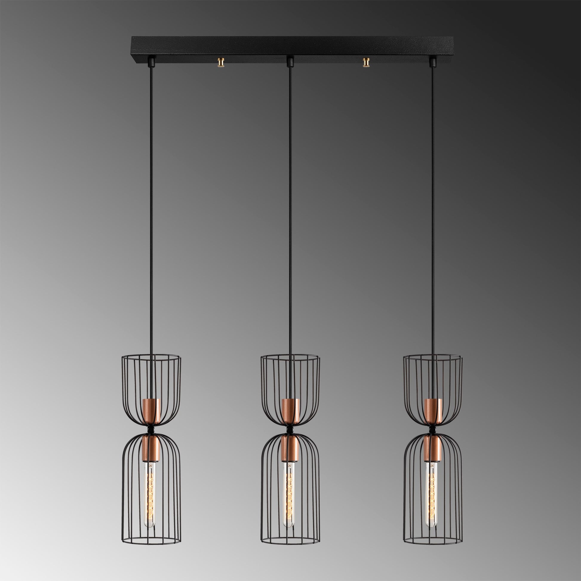 A cor preta deste candeeiro dá um toque de sofisticação e elegância ao seu espaço. O seu design único e a silhueta cativante fazem dele um ponto focal em qualquer divisão, enquanto os três casquilhos e27 proporcionam uma iluminação ampla para iluminar o ambiente.