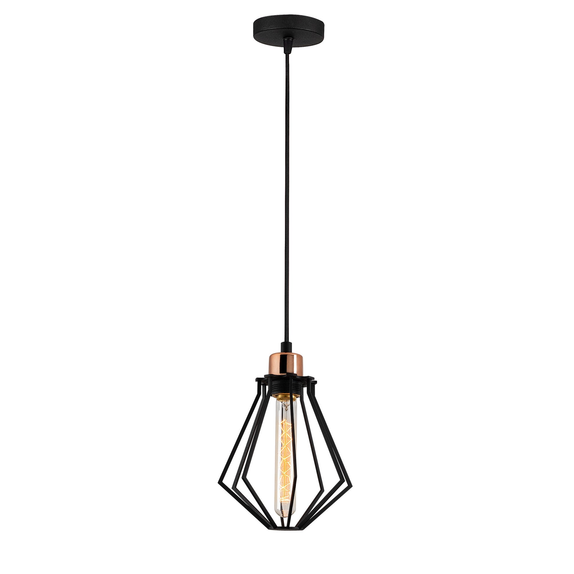 Candeeiro de Teto Industrial Moderno, Preto e Bronze, 18 cm de Diâmetro, 114 cm de Altura | Soquete E27, 40 W Máx., Cabo de 90 cm | Iluminação Elegante para Casa e Escritório