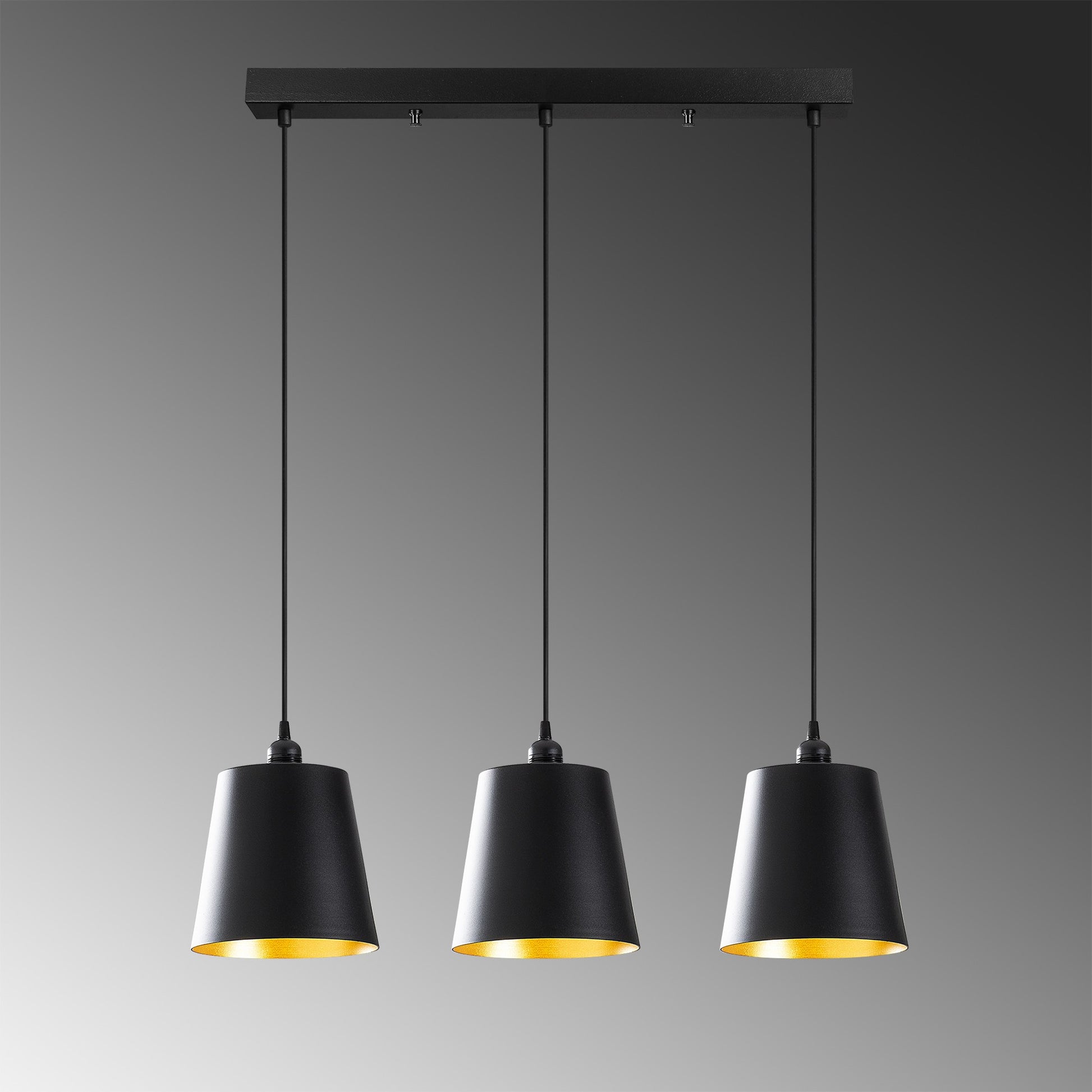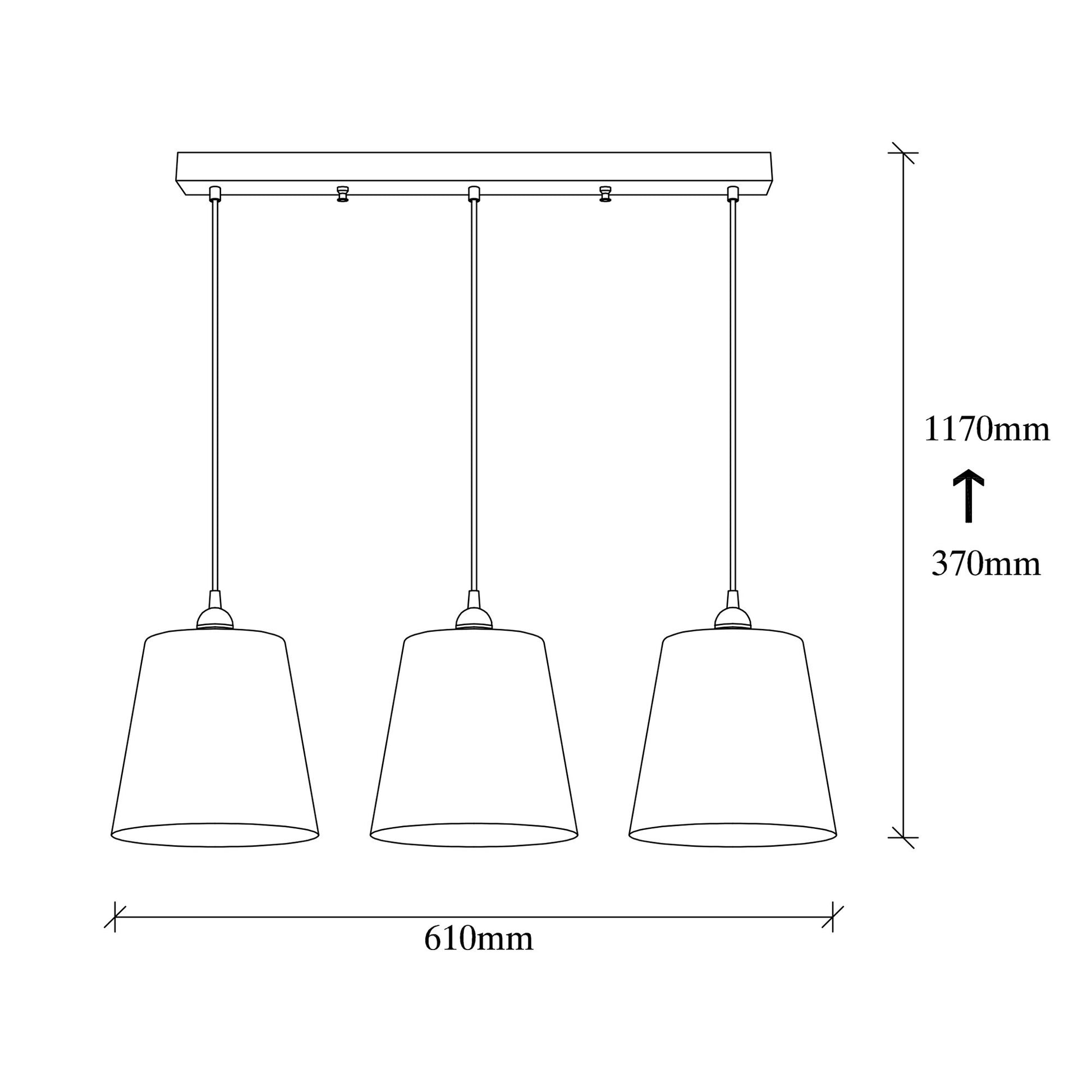 Candeeiro de Teto Industrial Escandinavo, Corpo em Metal Preto, 60 x 21 cm, Altura 117 cm, Ajustável, 3 x E27 máx. 40 W | Iluminação Elegante para Espaços Modernos