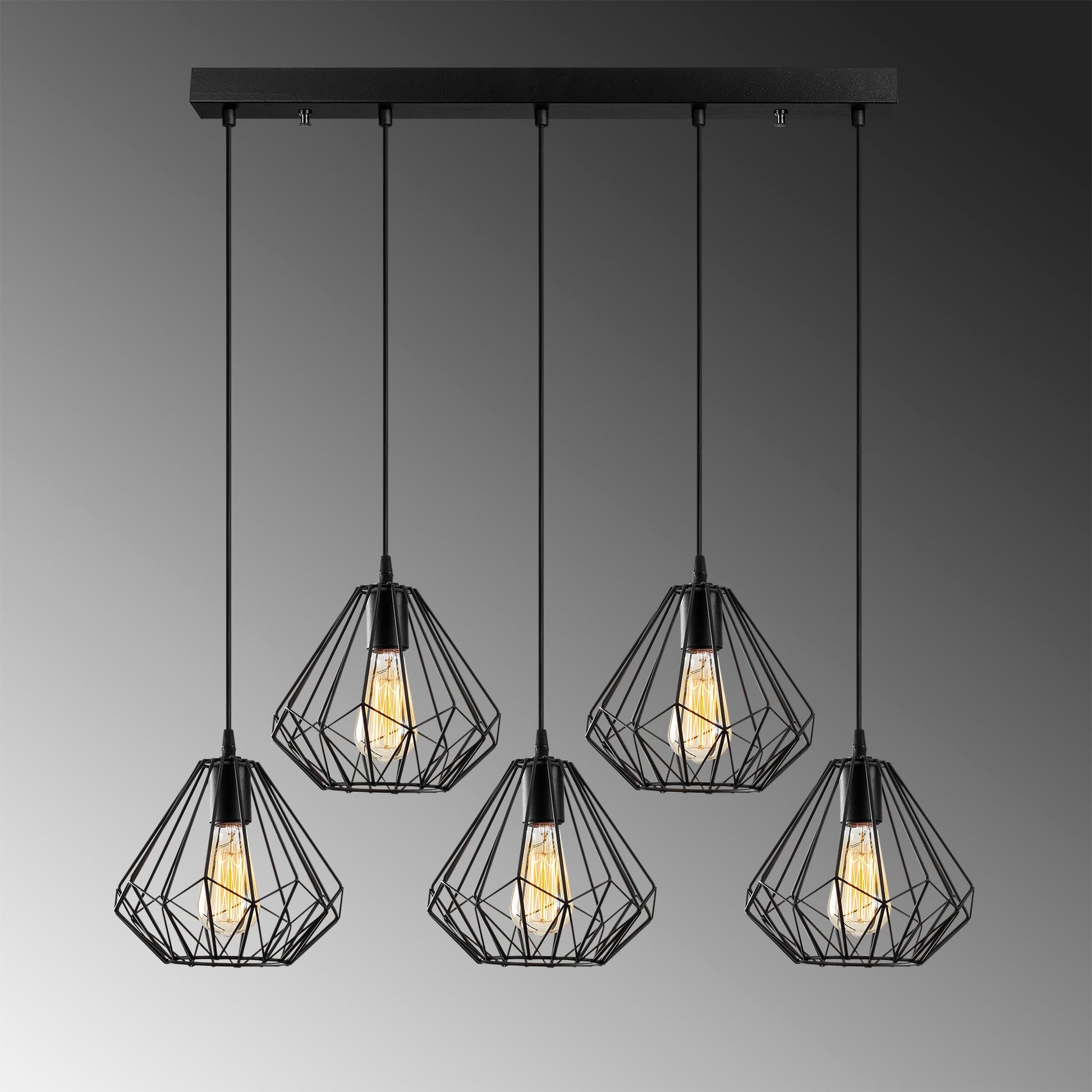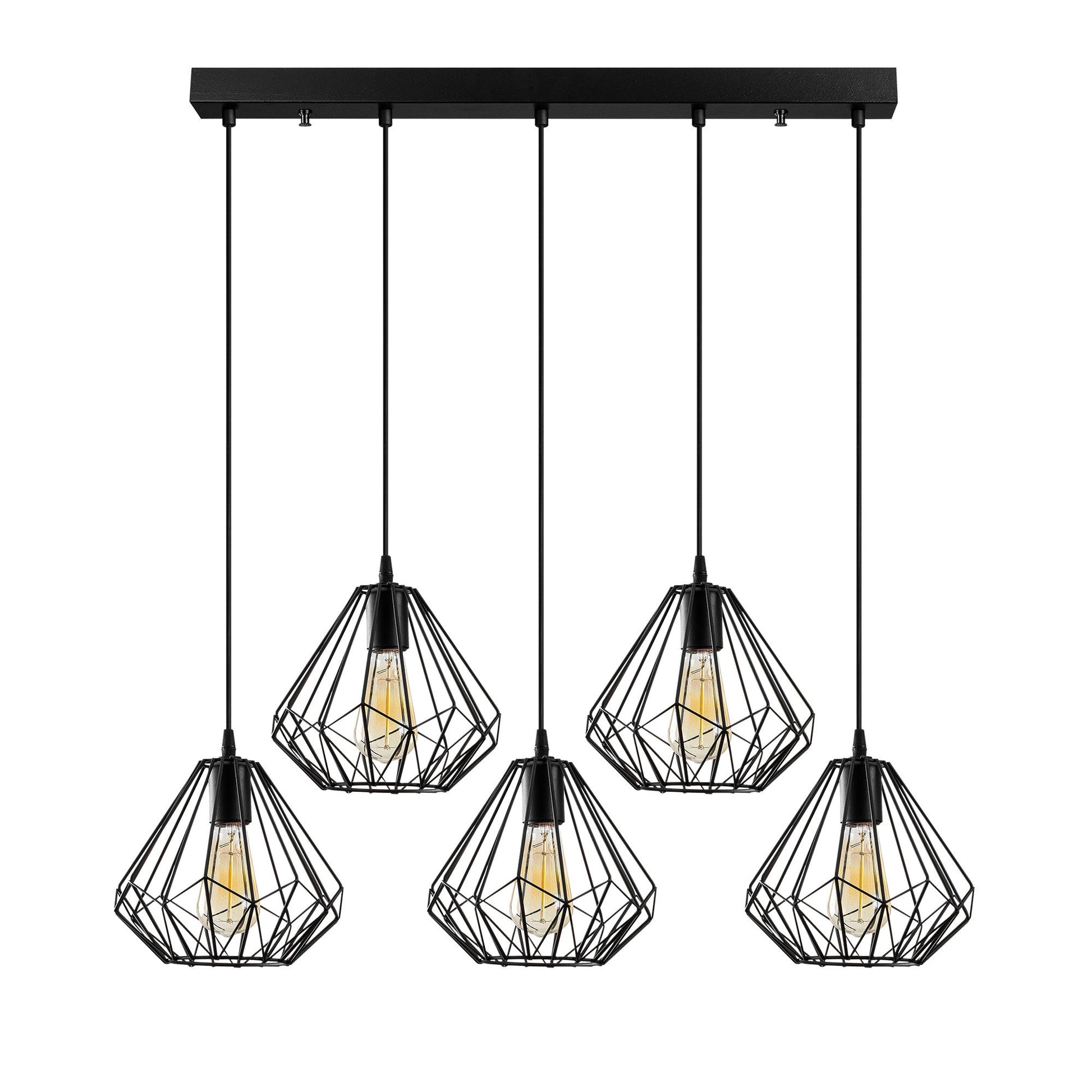 Candeeiro de Teto industrial preto, corpo de metal, 93 cm de diâmetro, 117 cm de altura, ajustável, 5 x E27 máx. 40 W, design elegante para espaços modernos, classificação IP20