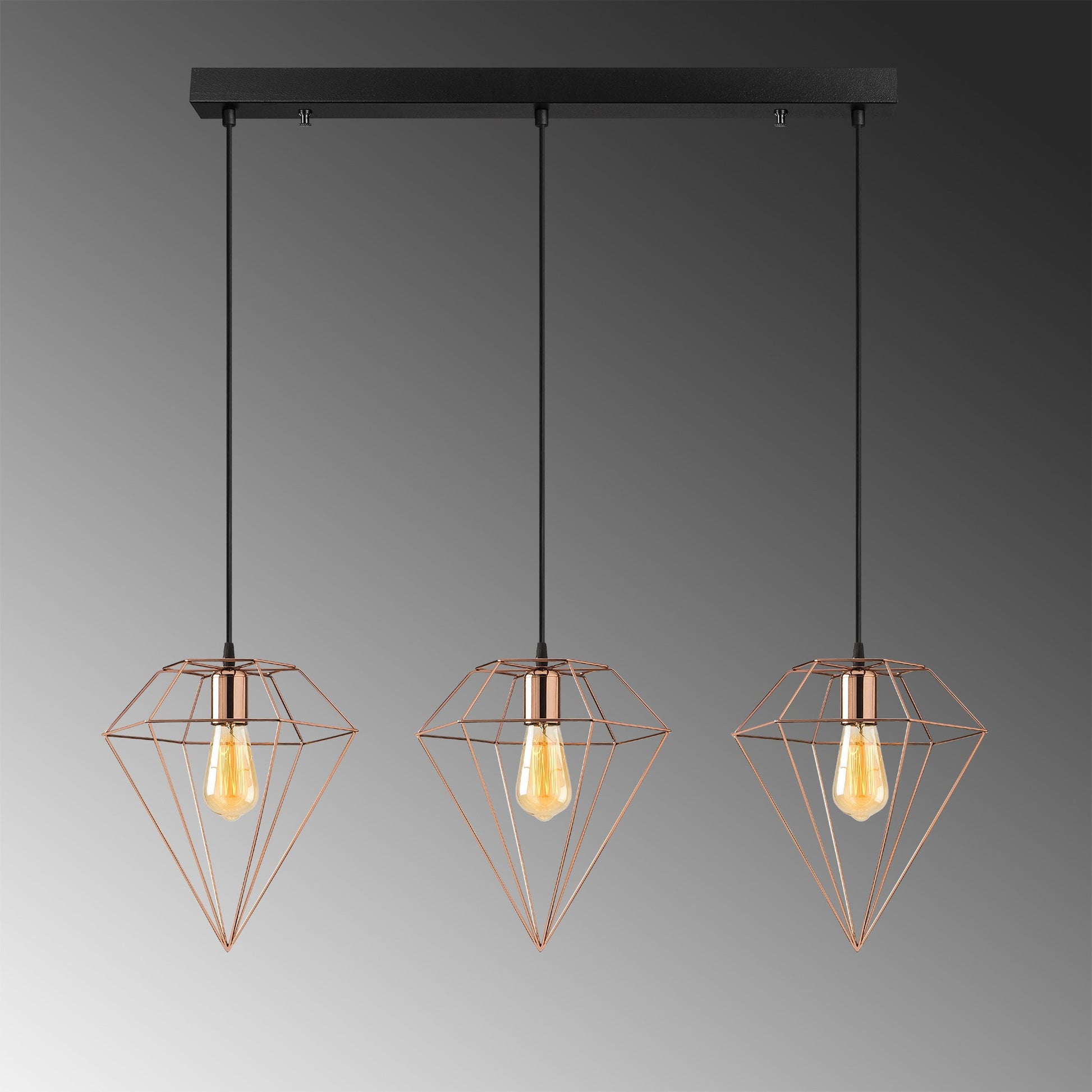Candeeiro de Teto elegante de cobre, 100 x 30 cm, altura 134 cm | Ajustável, 3 x E27 máx. 40 W | Corpo de ferro elegante, perfeito para decoração de casa glamorosa
