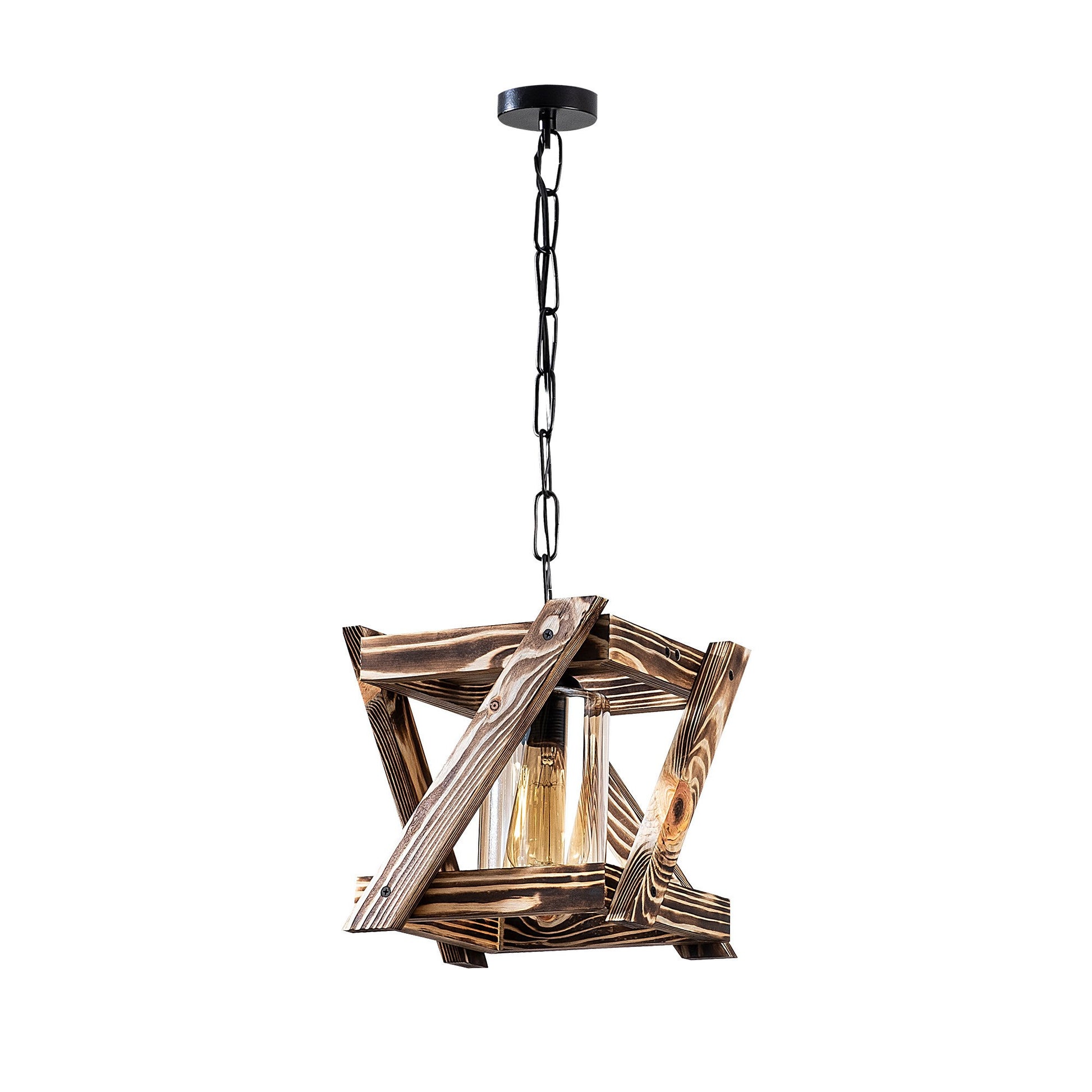Candeeiro de Teto elegante com corpo em madeira de carpa, 25 x 25 cm, altura 73 cm | Acabamento em preto e madeira, soquete E27, potência máxima de 40 W | Design rústico moderno para decoração de casa