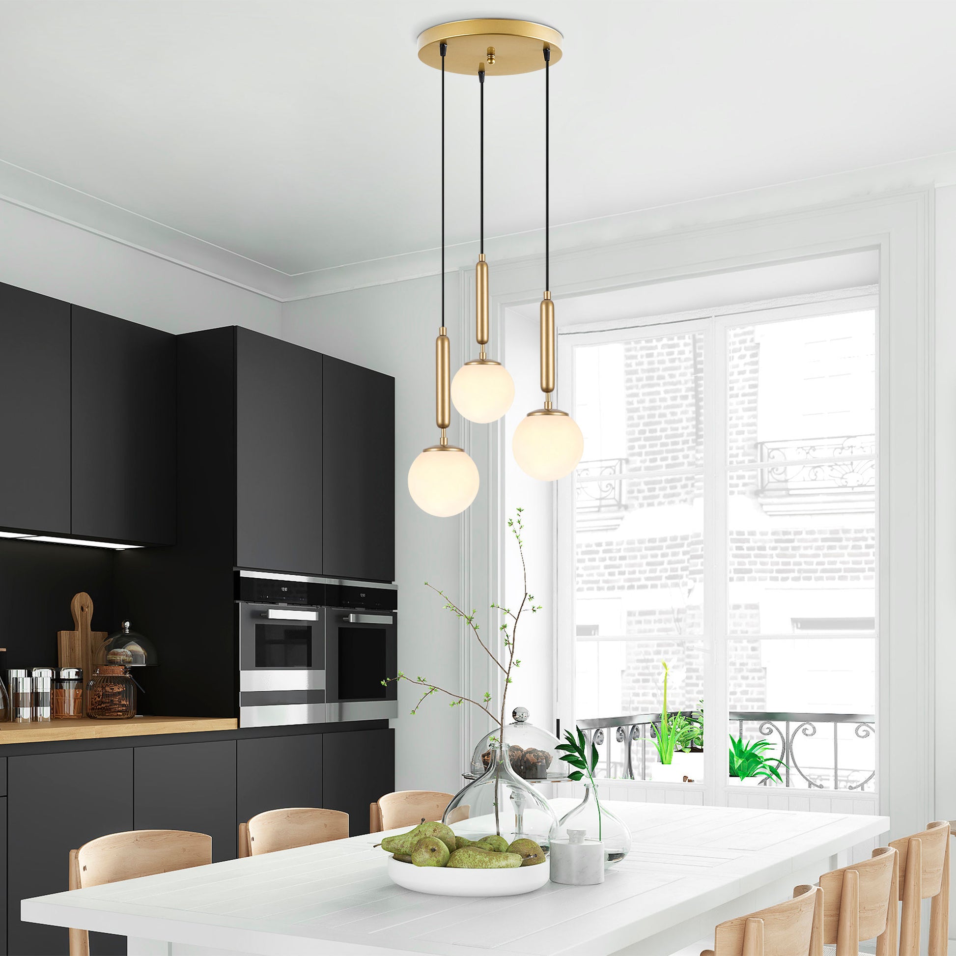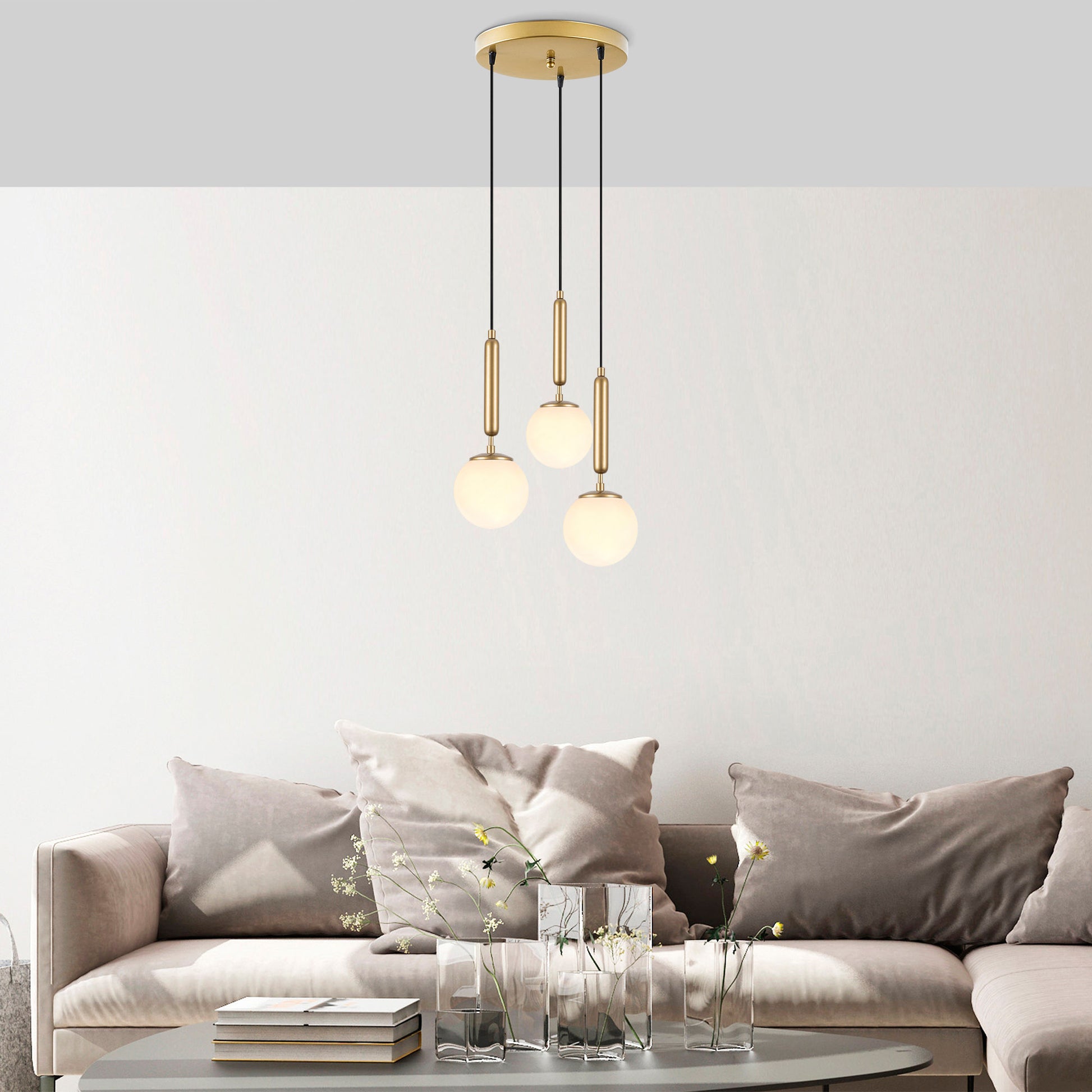 Candeeiro de Teto Dourado Elegante, Corpo em Metal, 34 x 34 x 134 cm | Altura Ajustável, 3 x E14 Máx. 40 W | Design Escandinavo Moderno, Perfeito para Espaços Glamourosos