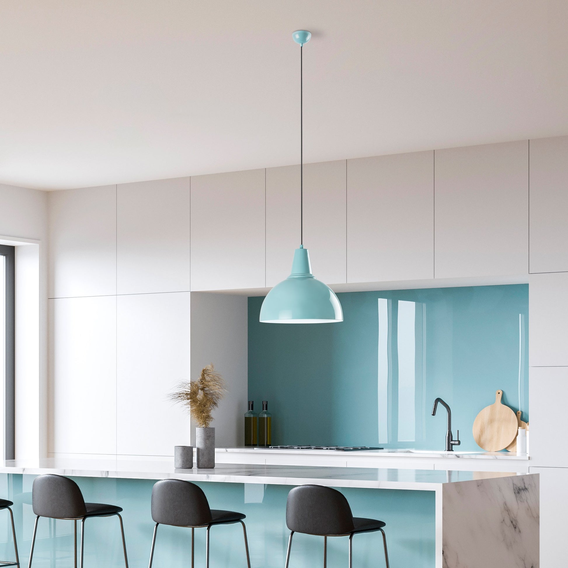 A cor turquesa vibrante deste candeeiro irá iluminar instantaneamente o seu espaço, acrescentando um toque de cor e estilo à decoração da sua casa. Quer o pendure na sala de estar, na sala de jantar ou no quarto, este candeeiro será o ponto focal de qualquer divisão.