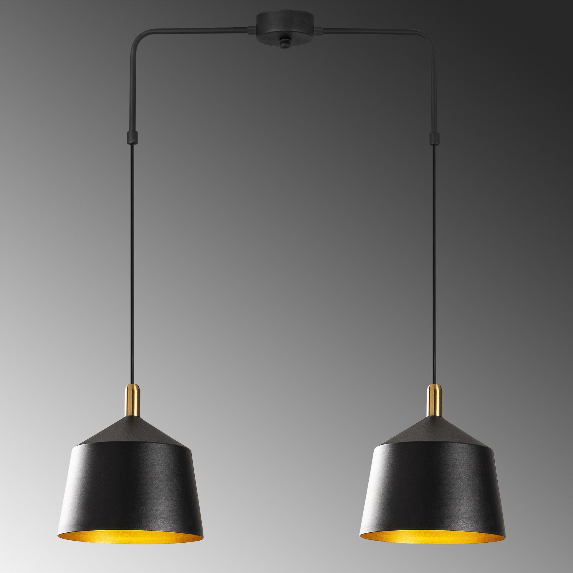 Candeeiro de Teto Escandinavo Elegante, Preto e Dourado, 70 x 70 cm, Altura 100 cm | Ajustável, Corpo em Metal, 2 x E27 máx. 40 W | Iluminação Elegante para Espaços Modernos