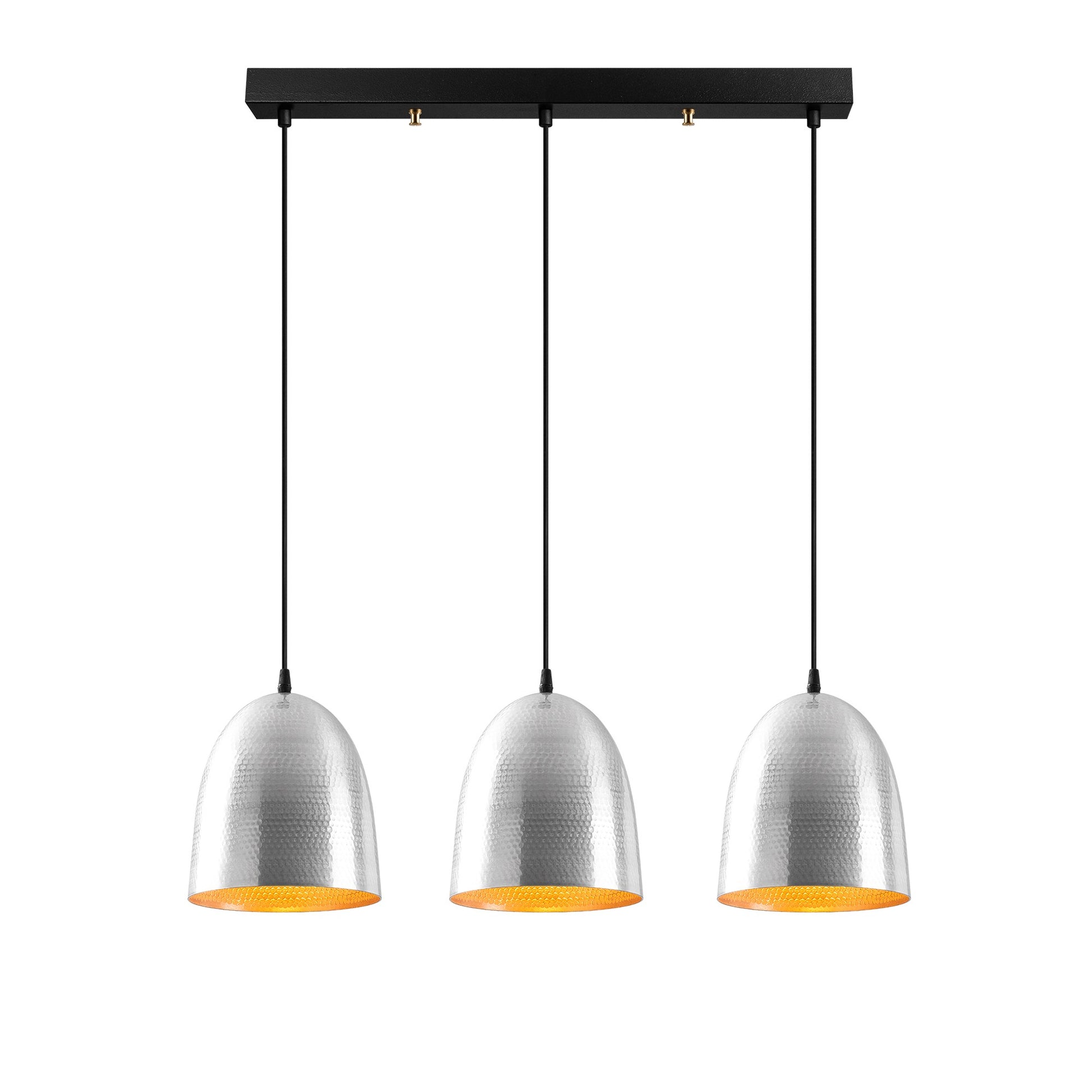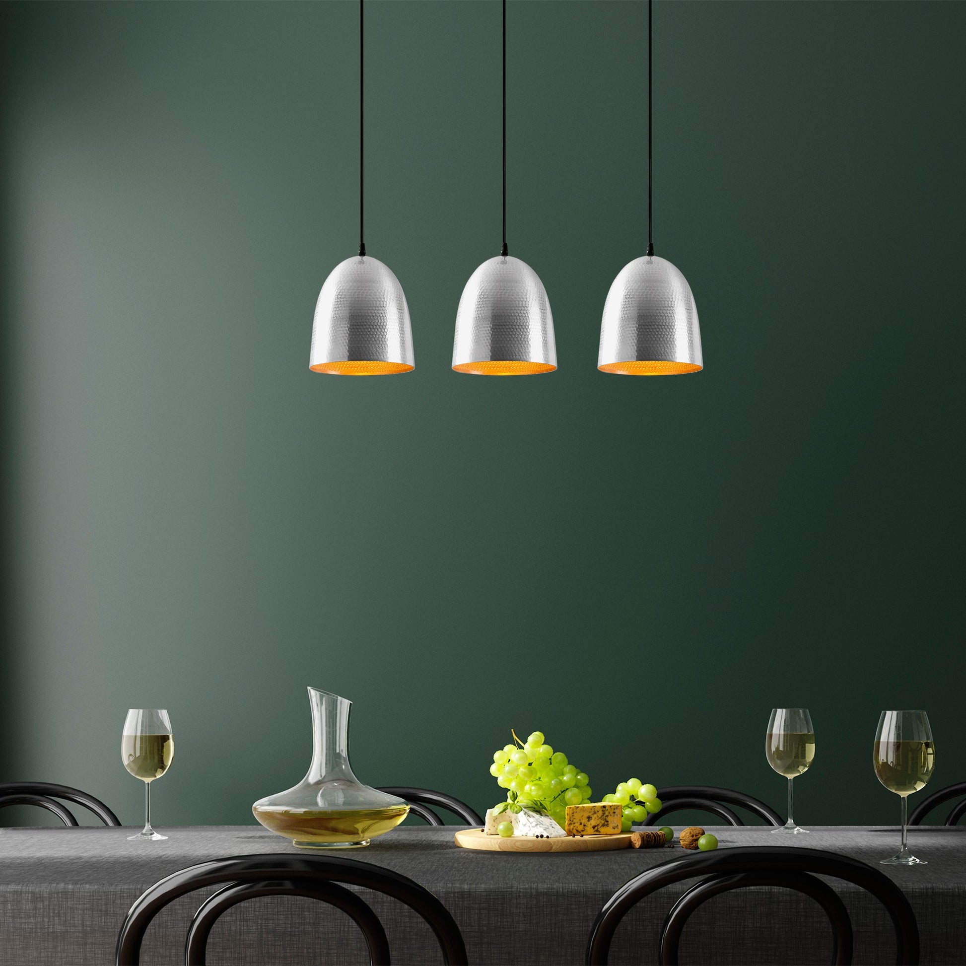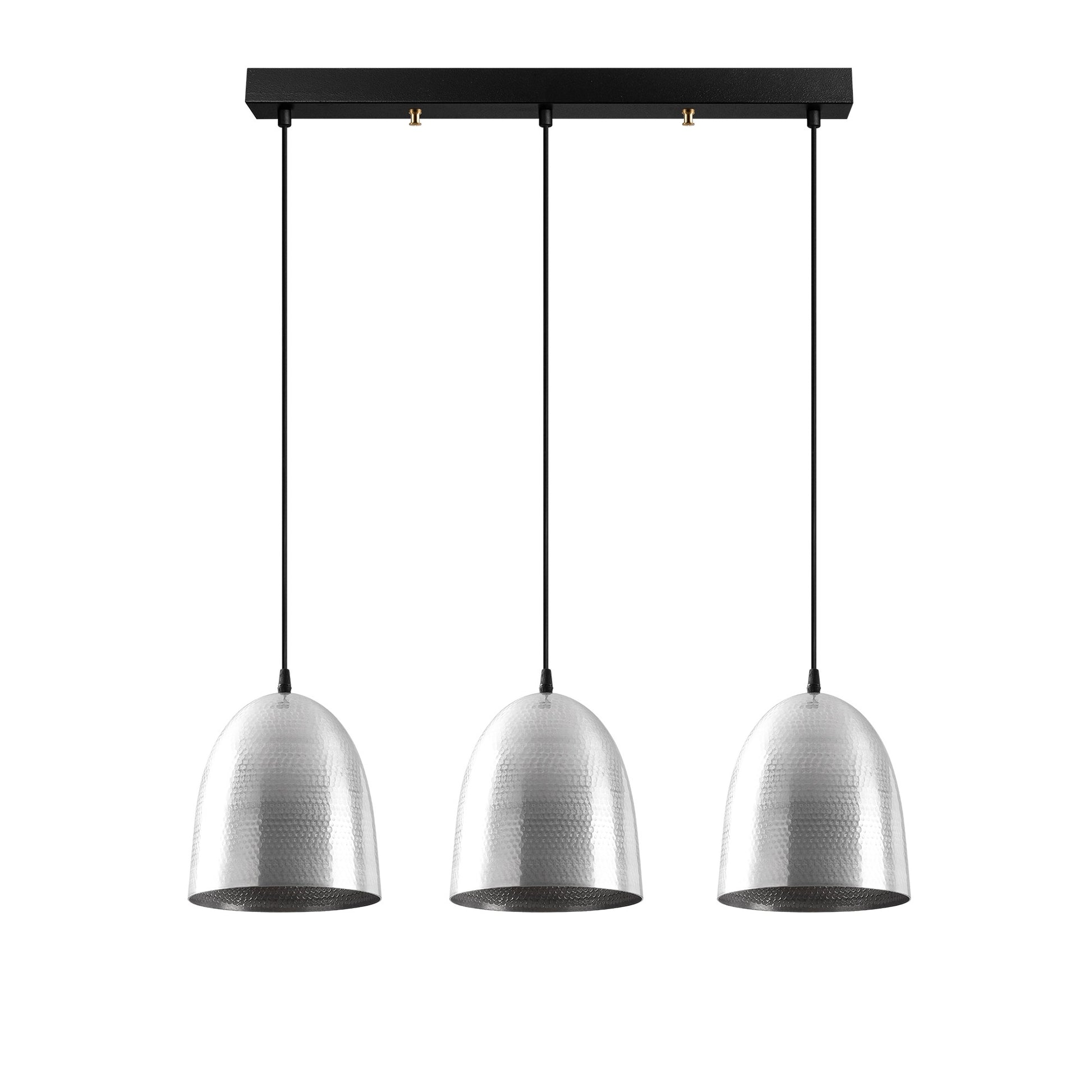 Candeeiro de Teto escandinavo elegante, corpo de metal prateado, 70 x 20 cm, altura ajustável de 125 cm, 3 x E27 máx. 40 W, iluminação elegante para espaços modernos