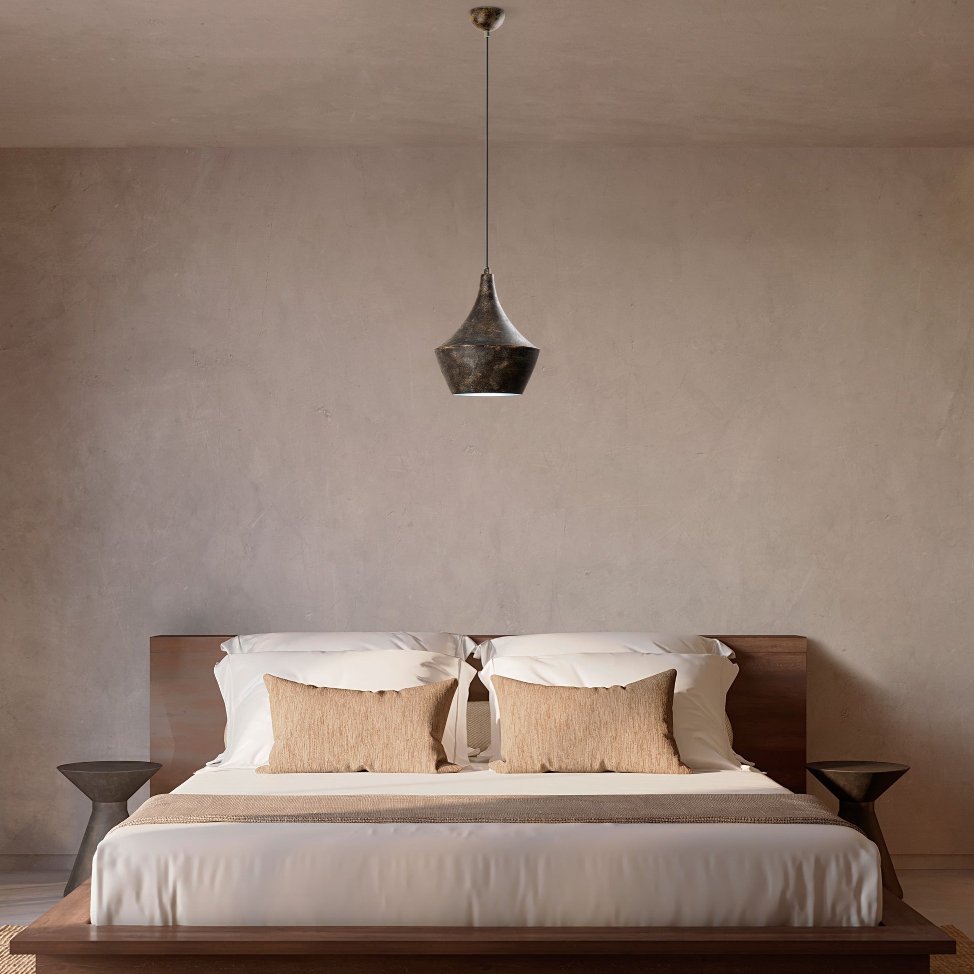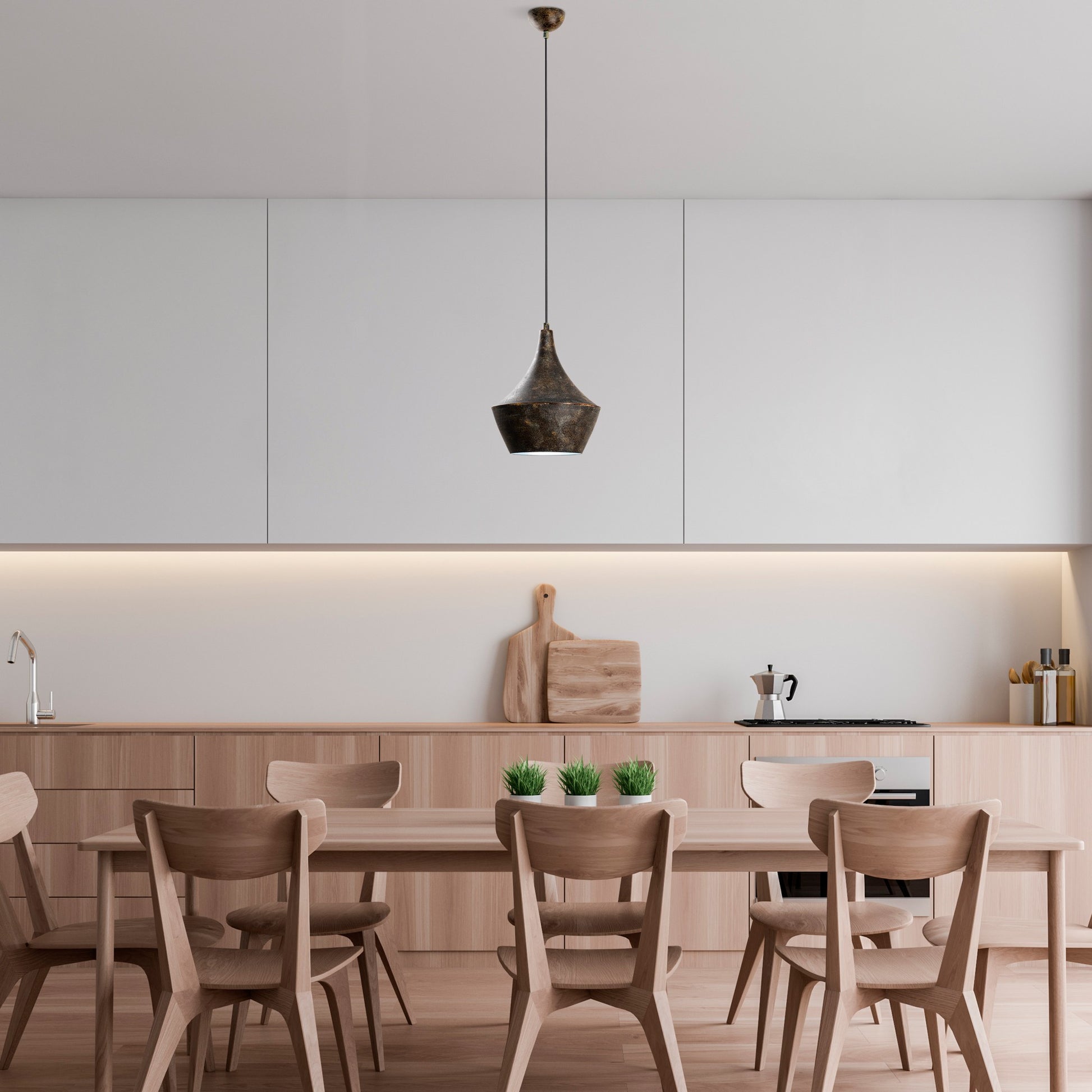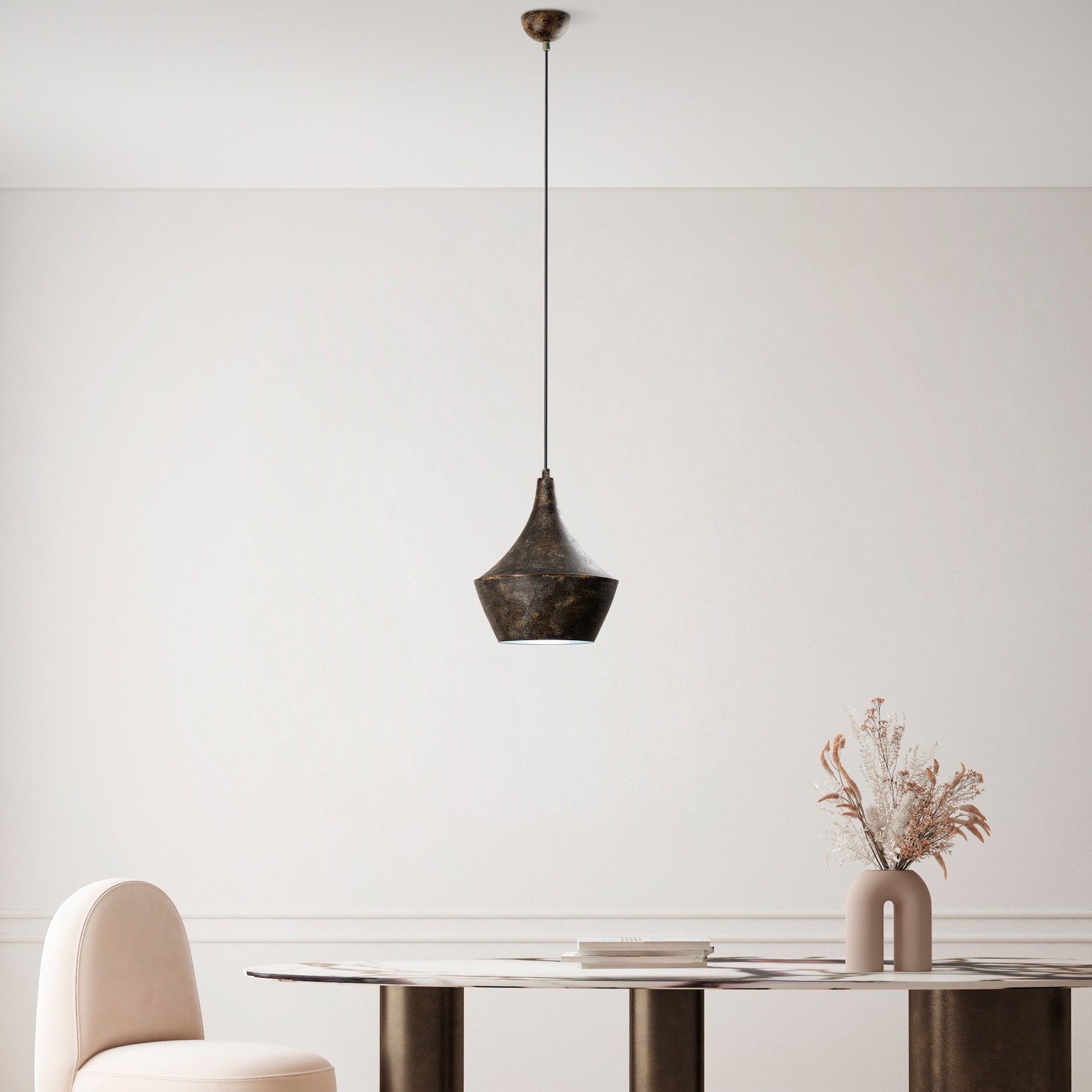 O candeeiro apresenta uma bonita cor antiquada que confere um encanto vintage à sua decoração. A sua altura ajustável permite-lhe personalizar o aspeto para se adaptar perfeitamente ao seu espaço, enquanto o corpo metálico garante durabilidade e longevidade.