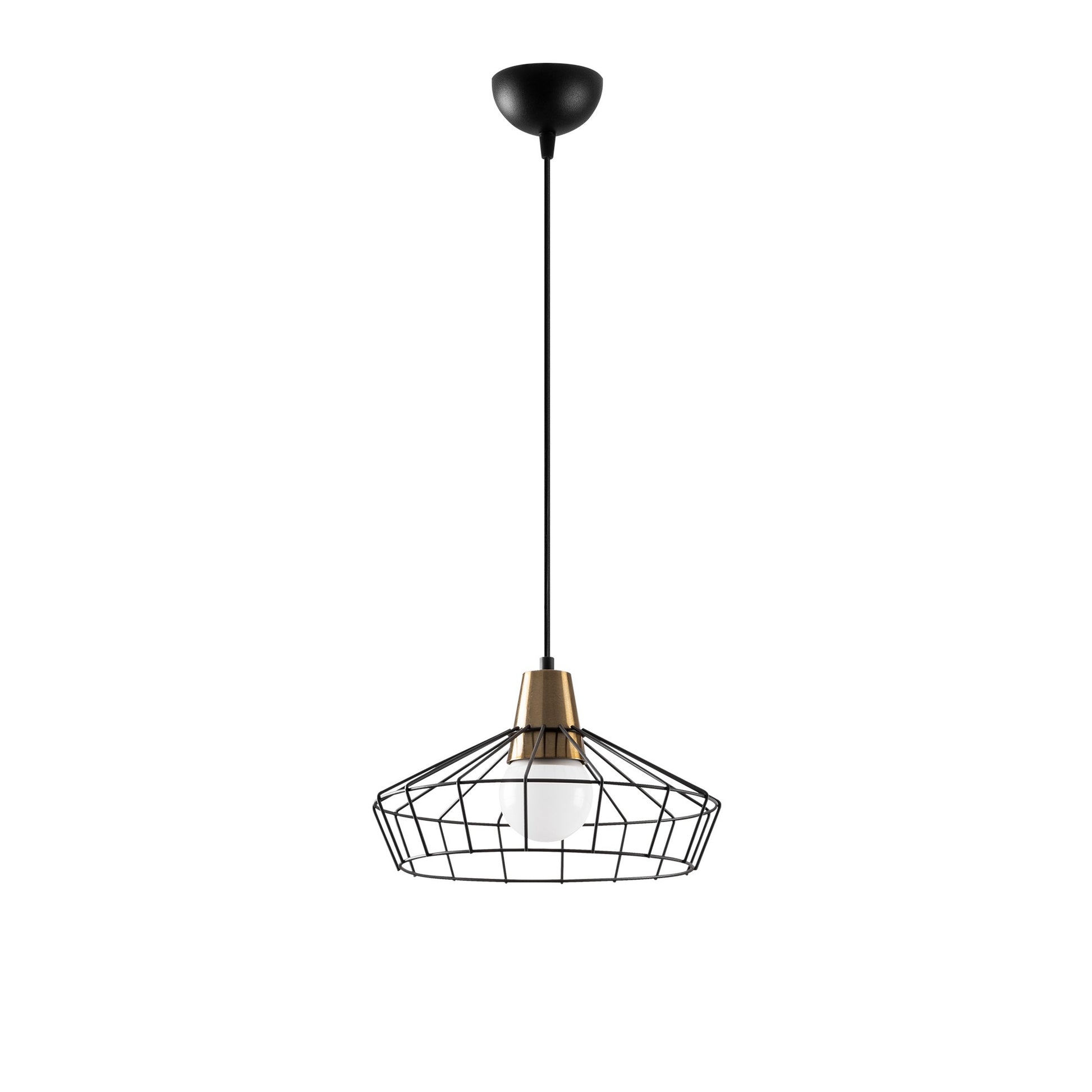 O candeeiro possui um corpo metálico robusto, garantindo durabilidade e longevidade. A sua cor preta acrescenta um toque de modernidade e elegância, combinando sem esforço com qualquer estilo de interior. O diâmetro da tampa de 35 cm e a altura de 14 cm complementam na perfeição o design geral, criando um aspeto harmonioso e equilibrado.