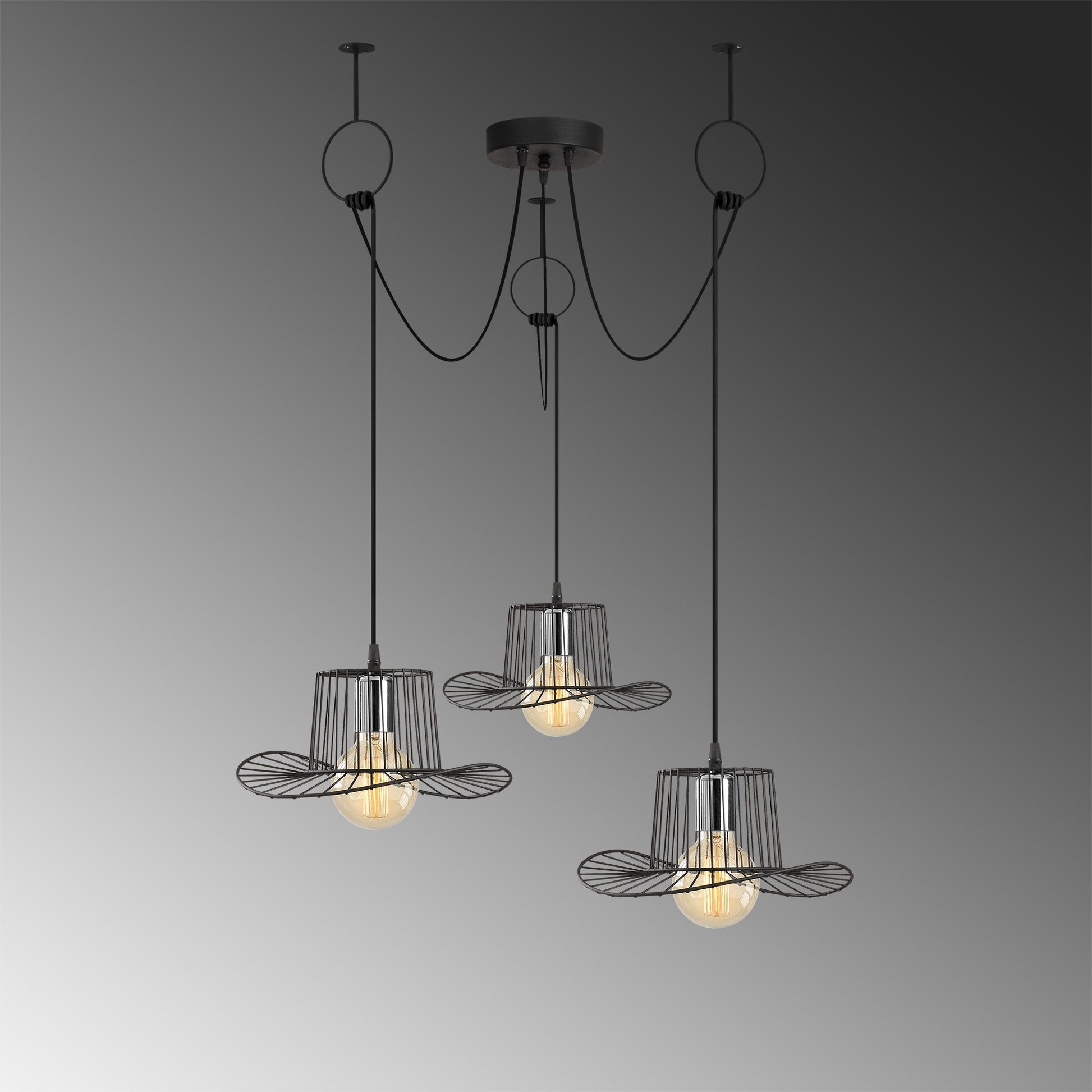 Candeeiro de Teto preto moderno, 118 cm de diâmetro, altura ajustável, corpo de metal, 3 soquetes E27, design elegante para casa e escritório | Classificação IP20