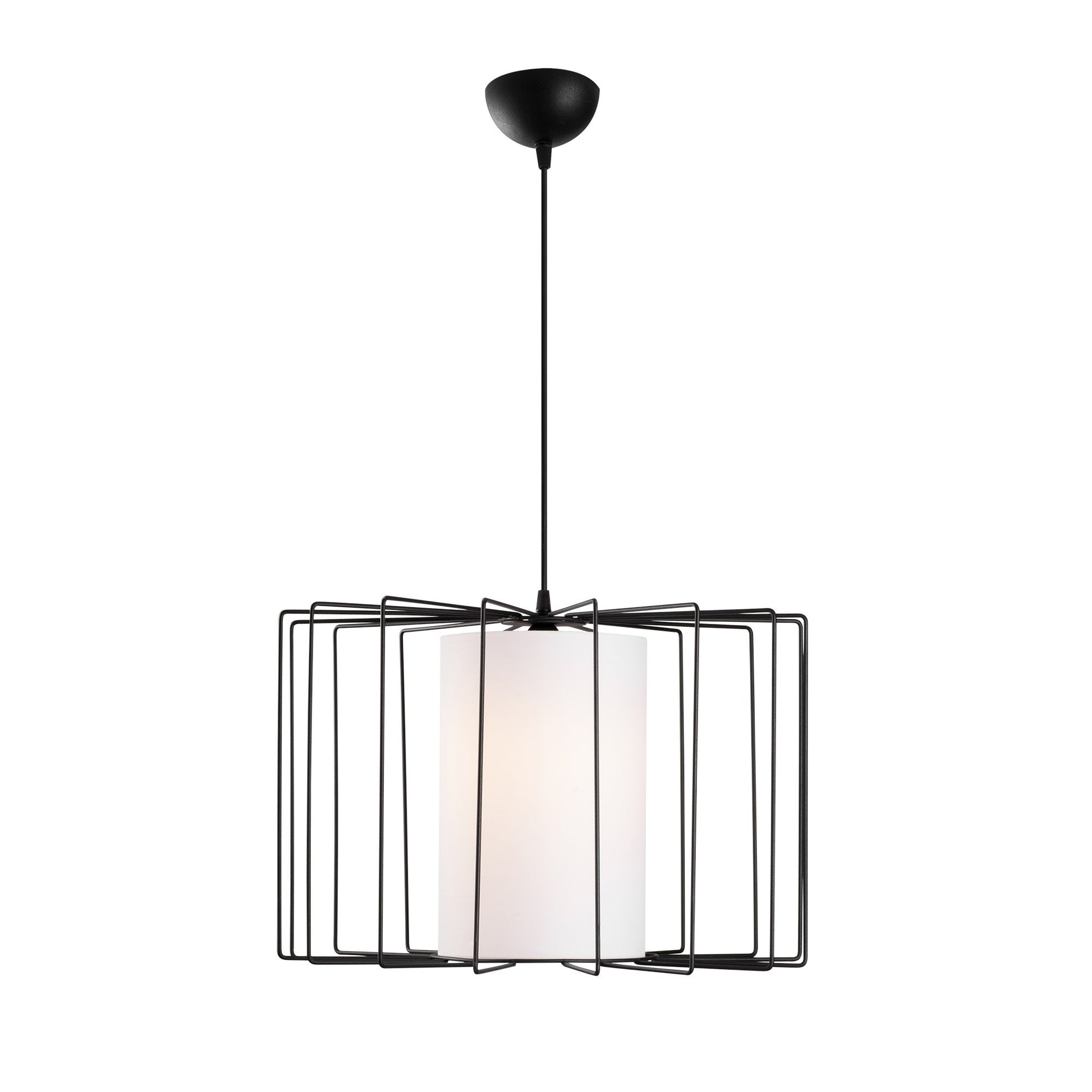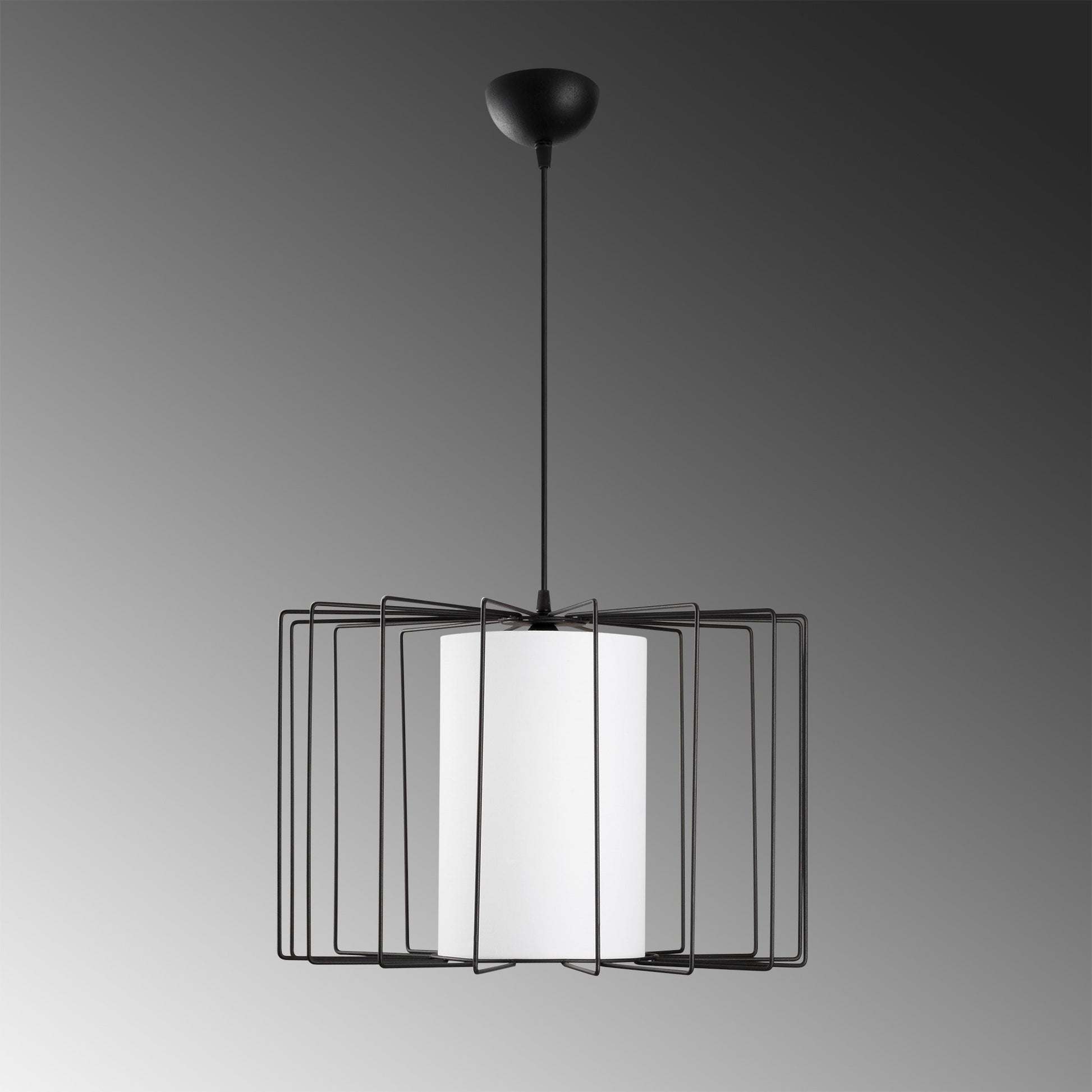As cores contrastantes do preto e do branco fazem deste candeeiro uma verdadeira obra de arte. O corpo elegante em metal preto complementa lindamente a tampa em tecido, criando um impacto visual deslumbrante. É um complemento perfeito para qualquer espaço contemporâneo ou de temática industrial.