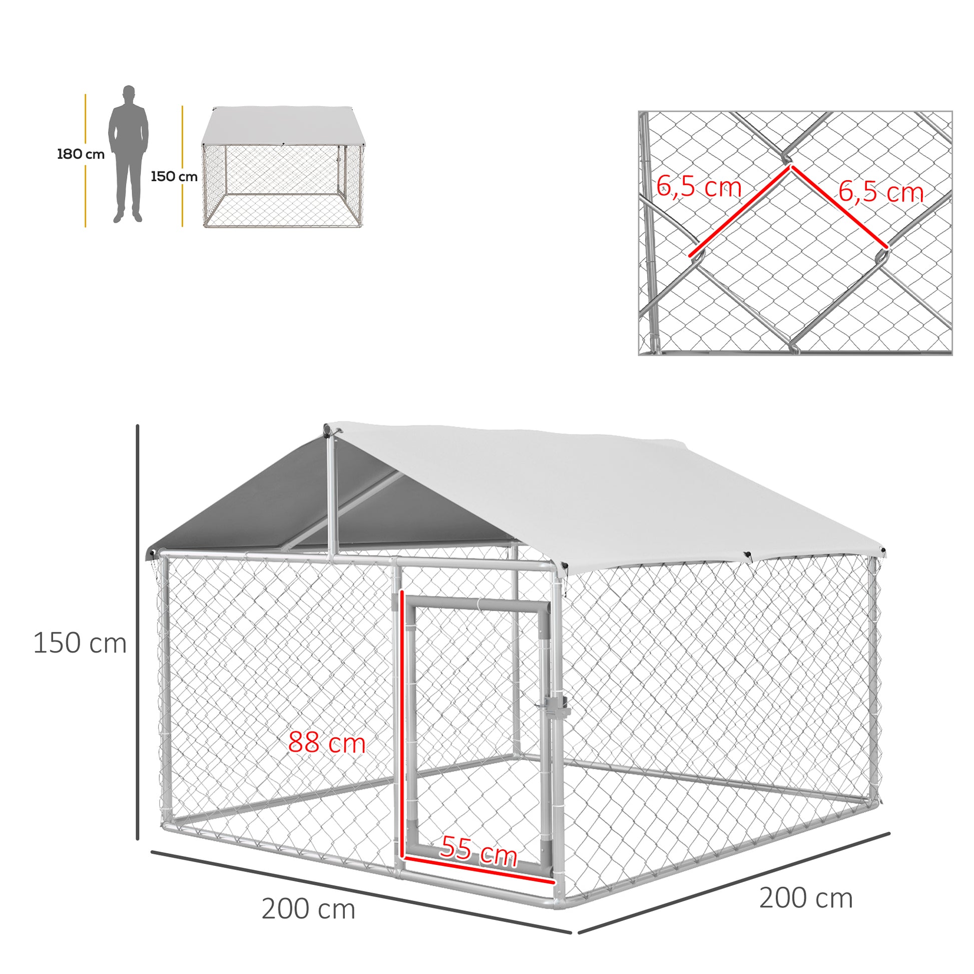 Proporcione um espaço seguro e confortável para o seu cão com este canil exterior de cor prata e medidas 200x200x150 cm.
