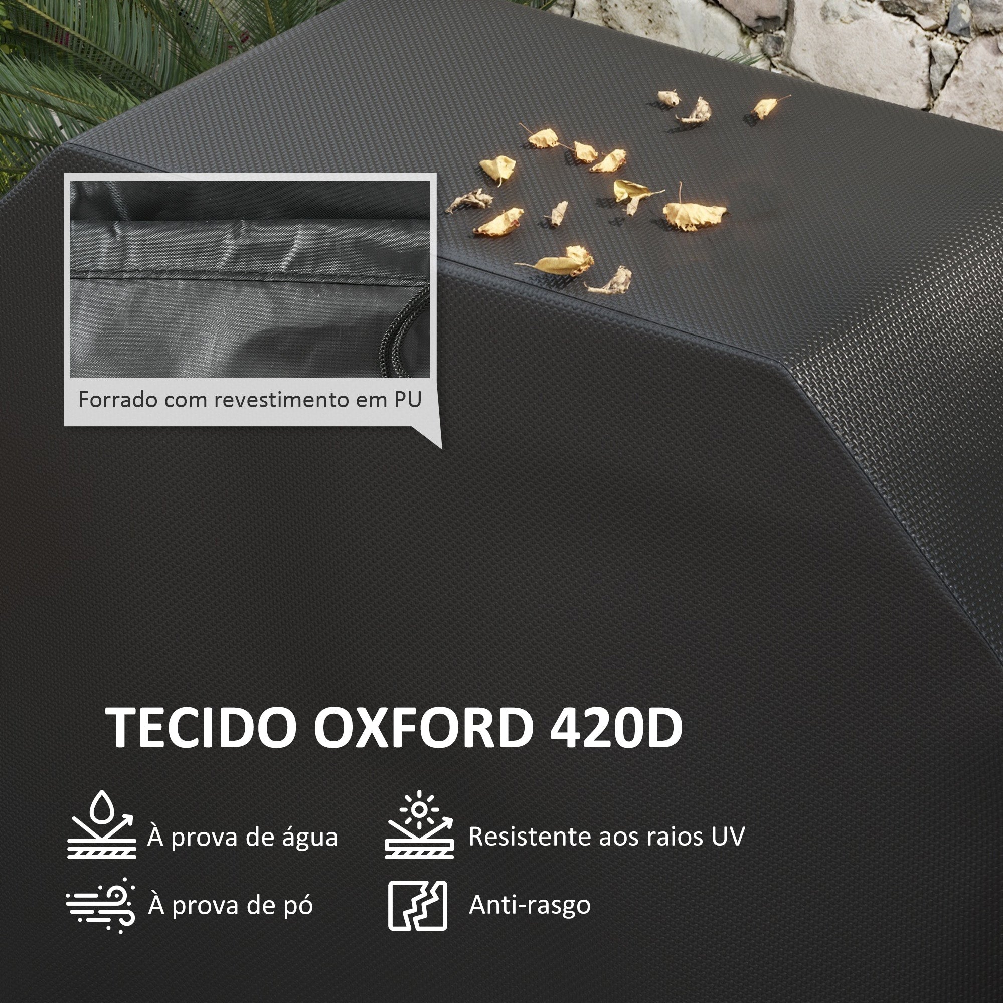 Proteja a sua barbecue com esta capa protetora resistente às intempéries, feita de tecido Oxford 420D com revestimento de PU, proporcionando resistência à água, raios UV e pó.