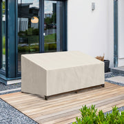Proteja seus móveis de jardim de forma eficaz com esta capa protetora bege, feita de tecido Oxford 600D resistente e impermeável.
