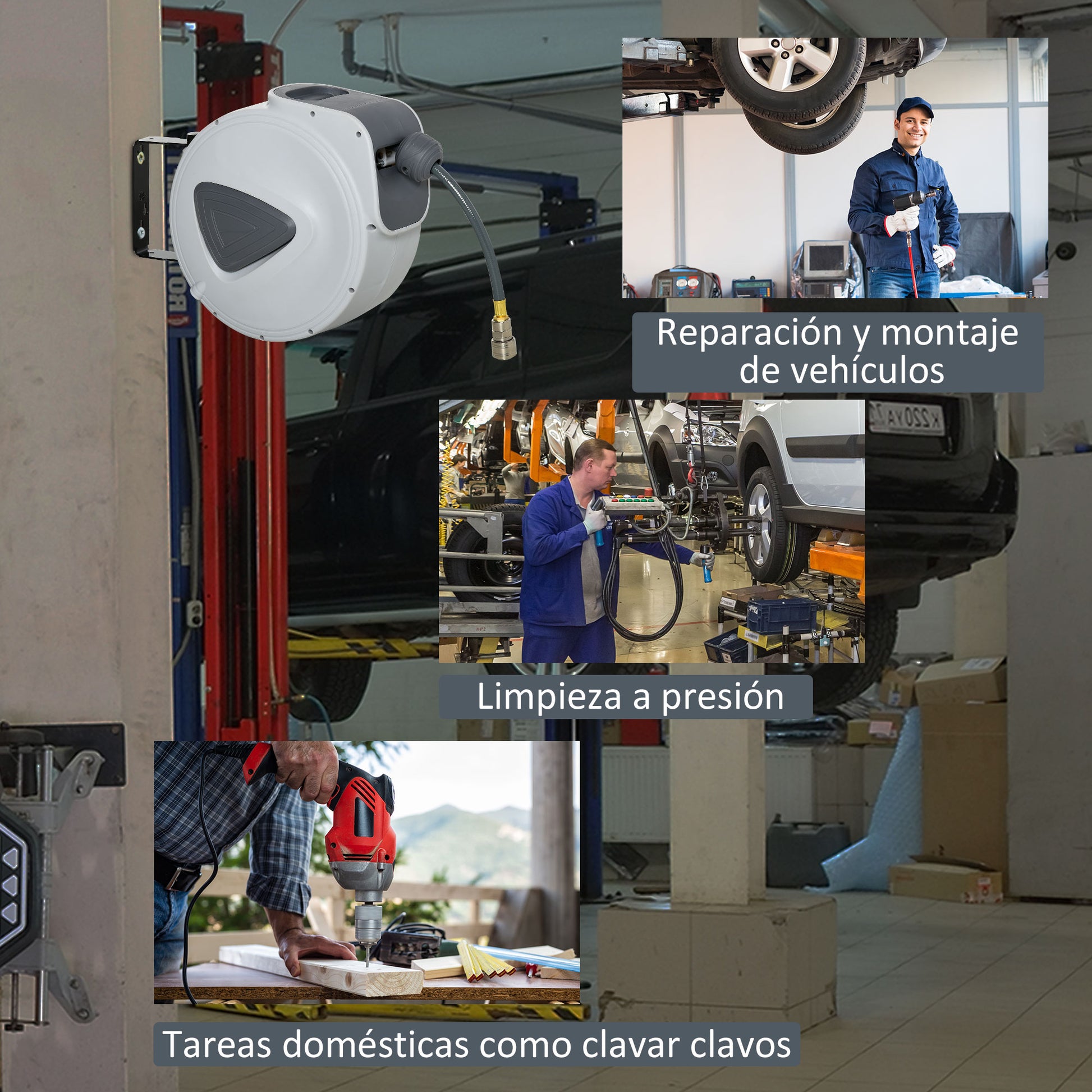 Carretel de Mangueira de Ar Comprimido Automático - 15m Cinzento (43x25x35 cm)