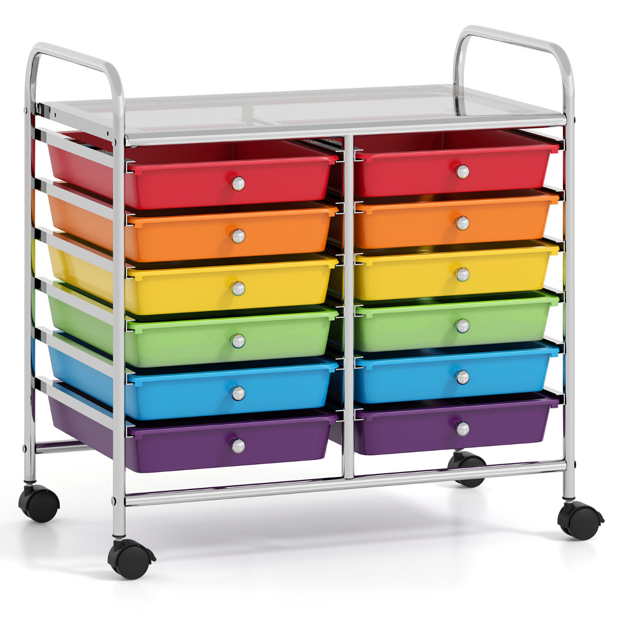 O nosso carrinho de arrumação vai ajudá-lo a manter o seu espaço organizado! Com 12 gavetas removíveis, pode armazenar vários artigos de forma ordenada. Além disso, o carrinho auxiliar tem uma ampla superfície para guardar objetos. Cada gaveta possui corrediças e puxadores para abrir e fechar facilmente. O quadro do carrinho é de metal galvanizado, conferindo-lhe grande estabilidade. Com 4 rodas, pode movimentar o carrinho sem esforço para onde quiser. Ideal para salas de estar, cozinhas, escritórios e muito mais.