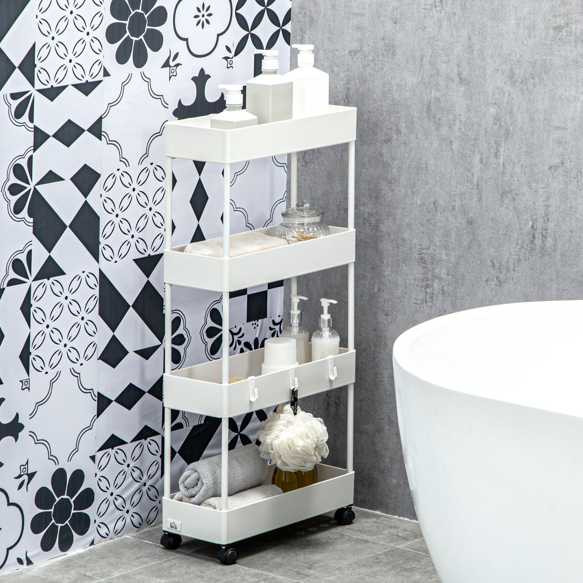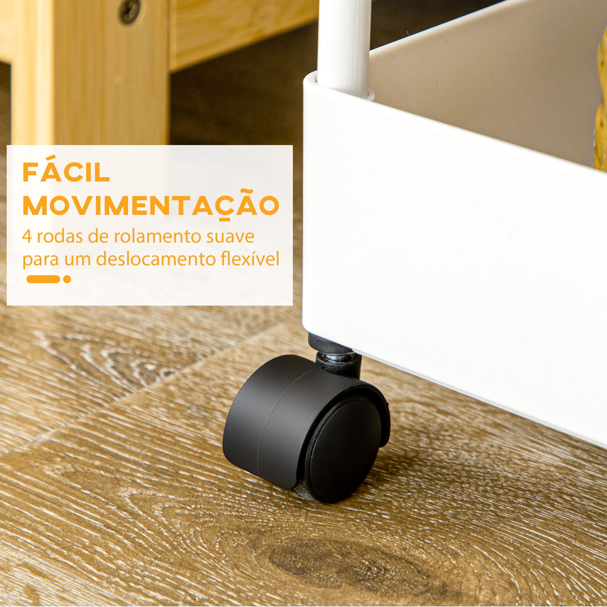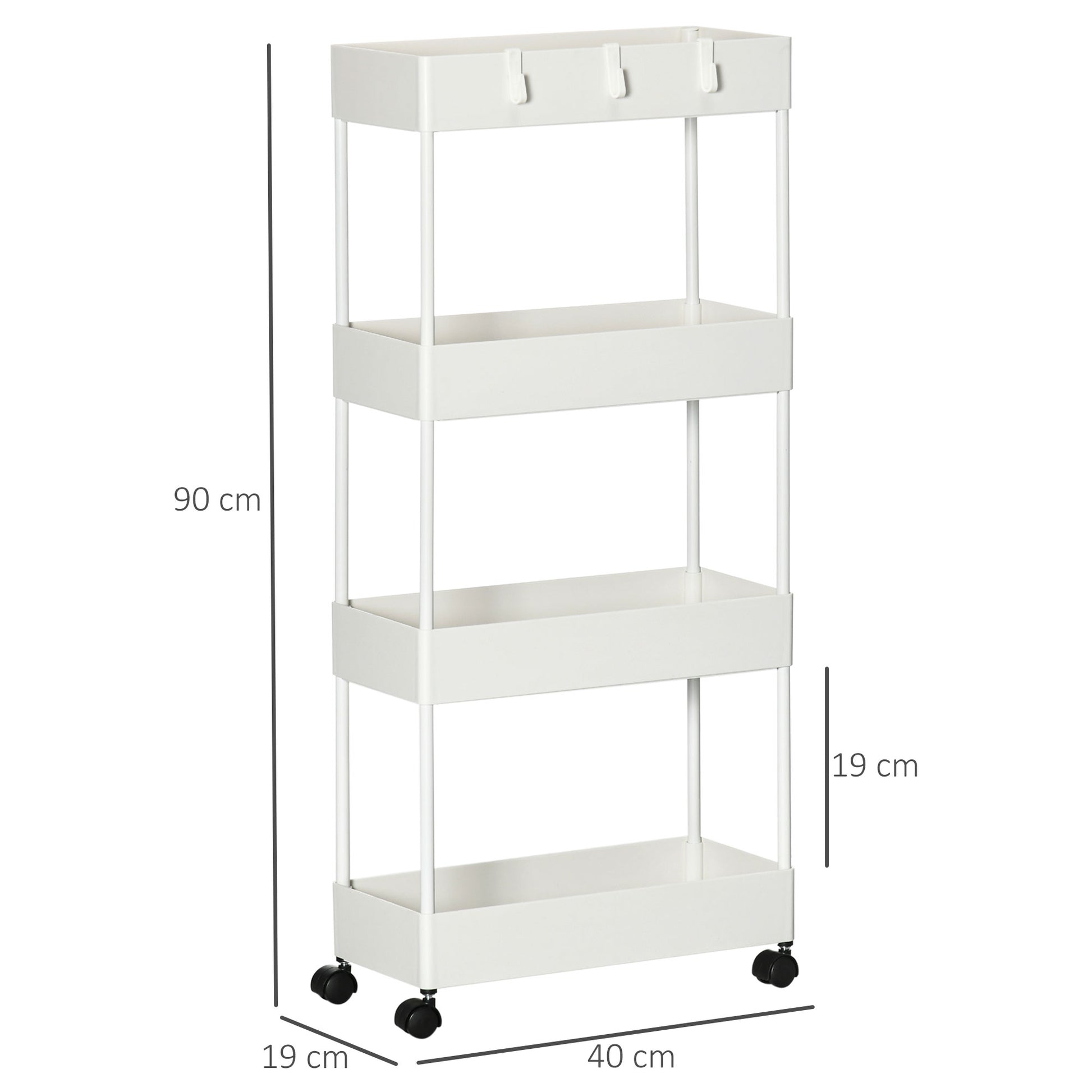 Carrinho Auxiliar de Armazenamento 4 Cestas 4 Ganchos 40x19x90 cm Branco