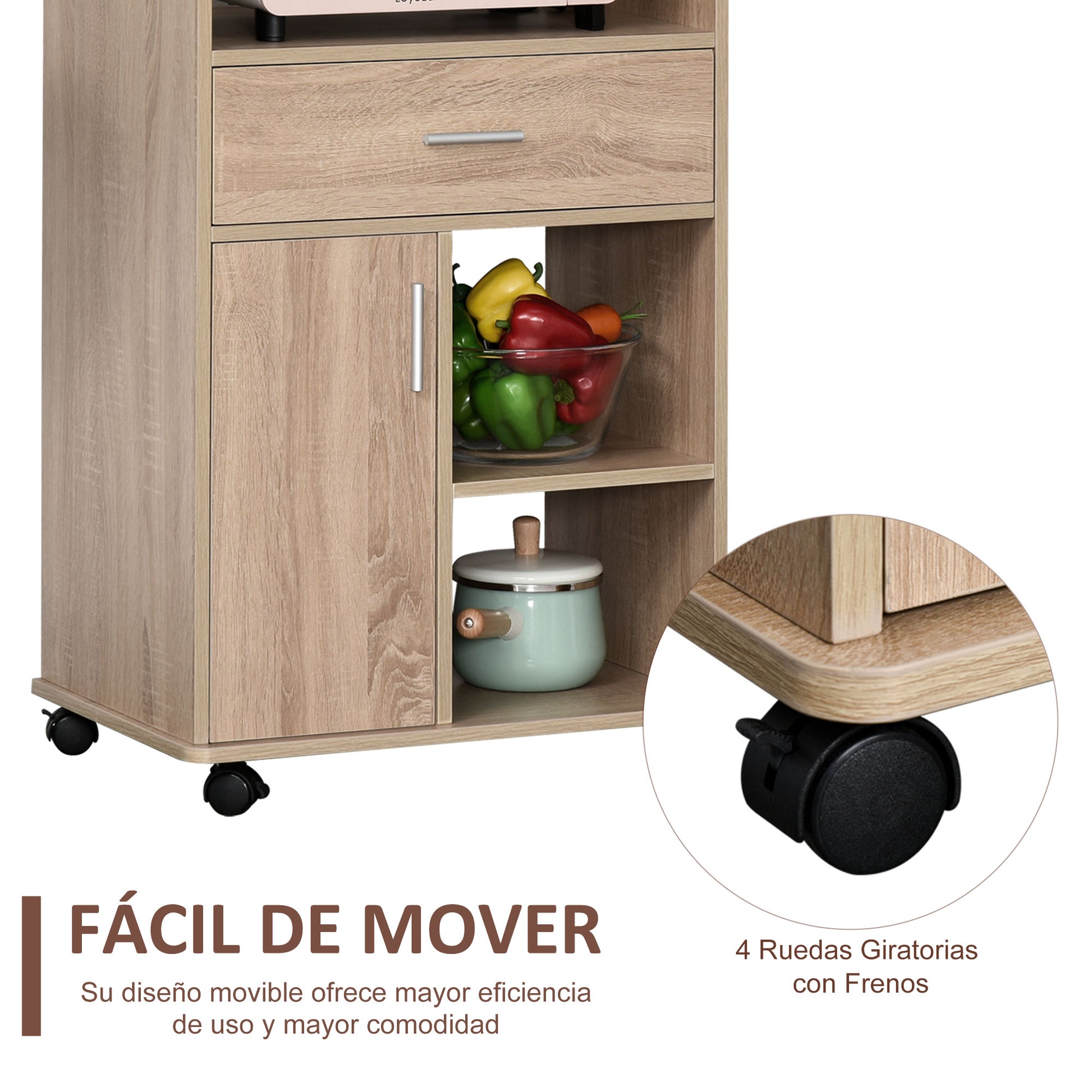 Carrinho de Cozinha para Micro-ondas 60x40x108 cm em Carvalho