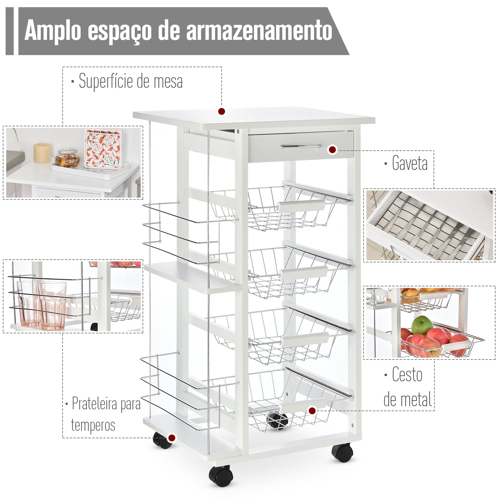 Carrinho de Cozinha Compacto Branco 47x37x83 cm - Organização e Praticidade