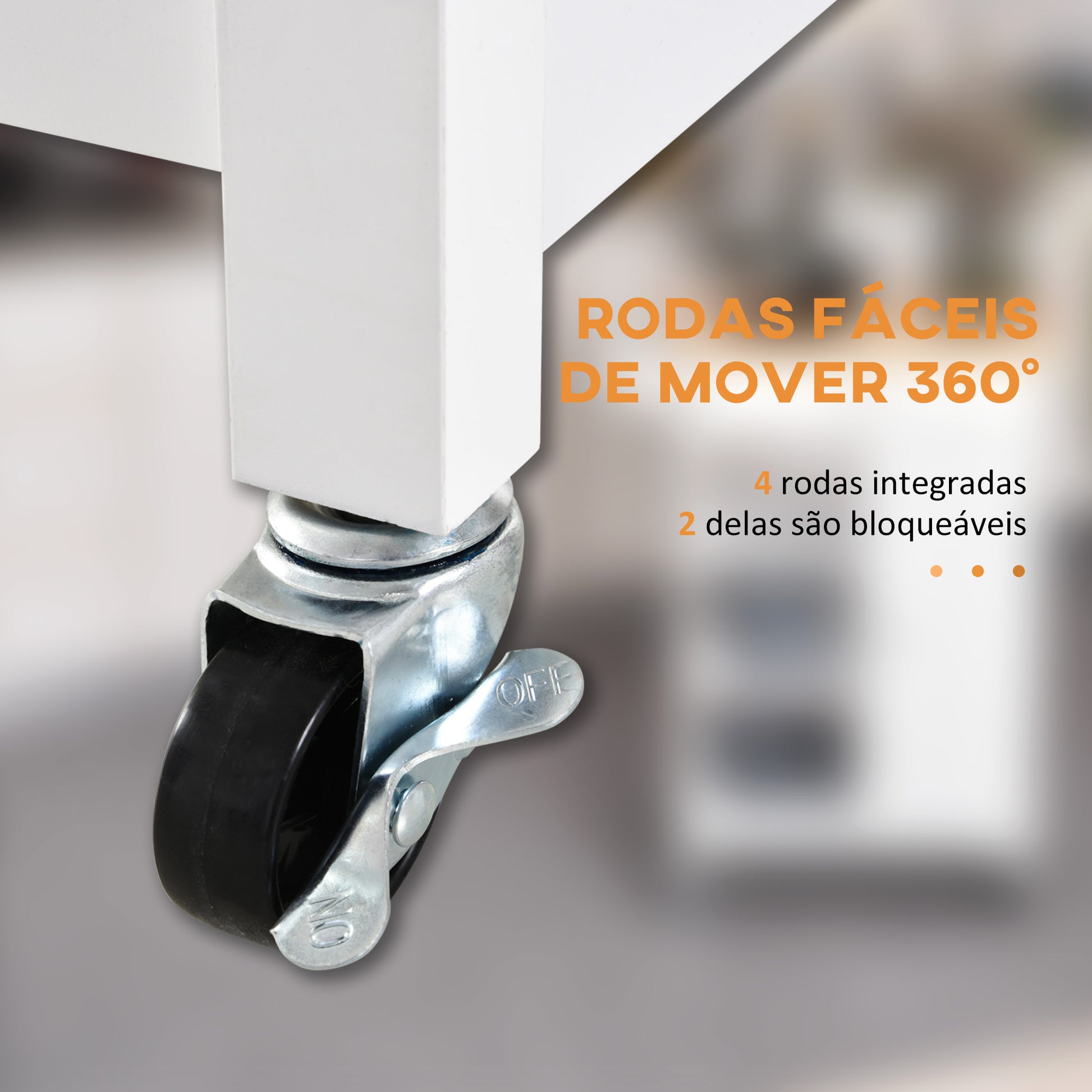 - Benefícios: Possui alça lateral multifuncional para pendurar toalhas, 4 rodas giratórias para facilitar o movimento e 2 rodas com freio para maior estabilidade.