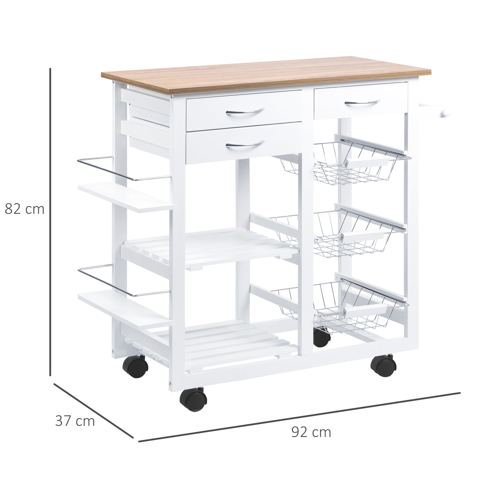 Carrinho de Cozinha Multifuncional Branco 92x37x82 cm