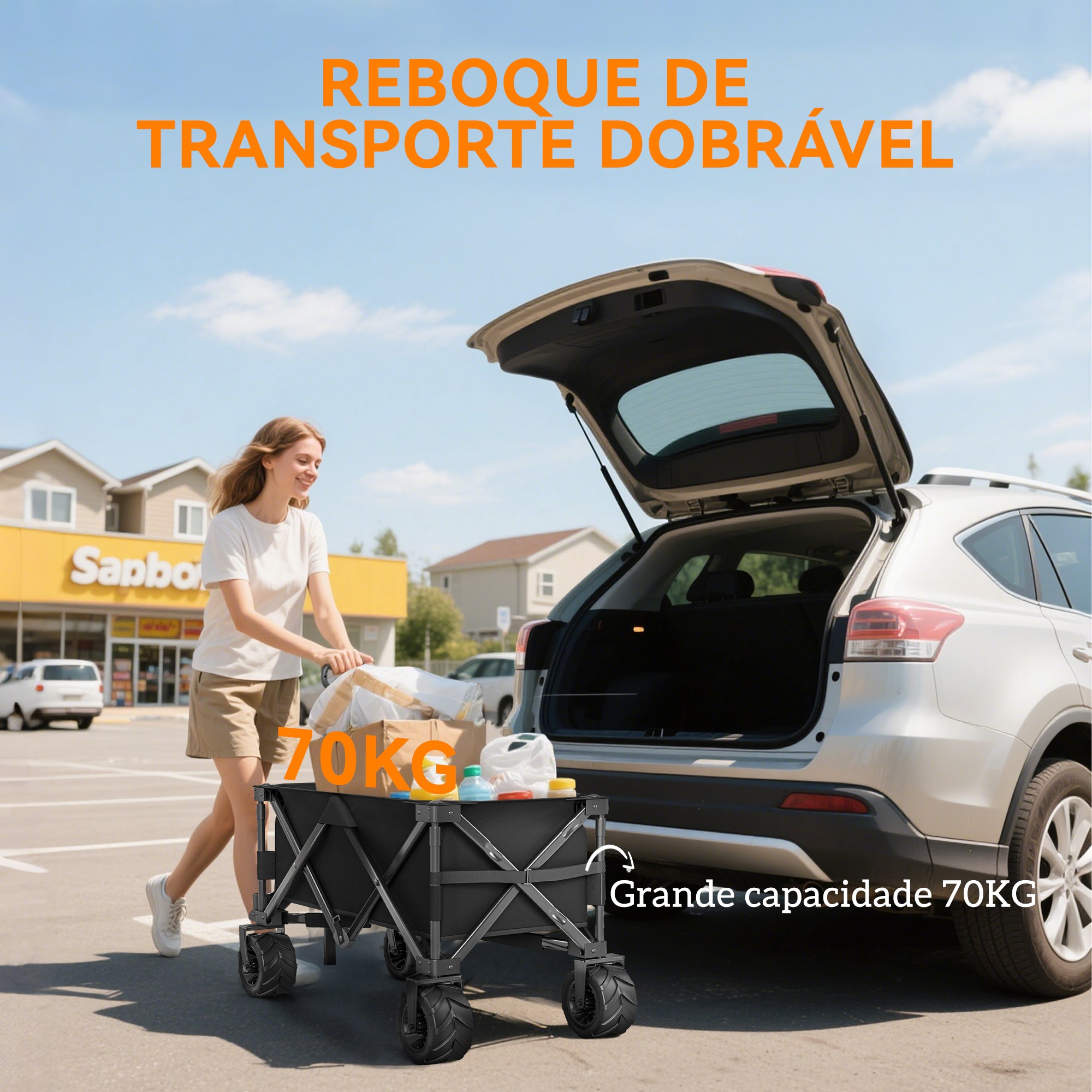 O Carrinho de Transporte Dobrável é perfeito para atividades ao ar livre, compras e muito mais. Com medidas de 108x55x61-91 cm e cor preta, este carrinho é prático e versátil.