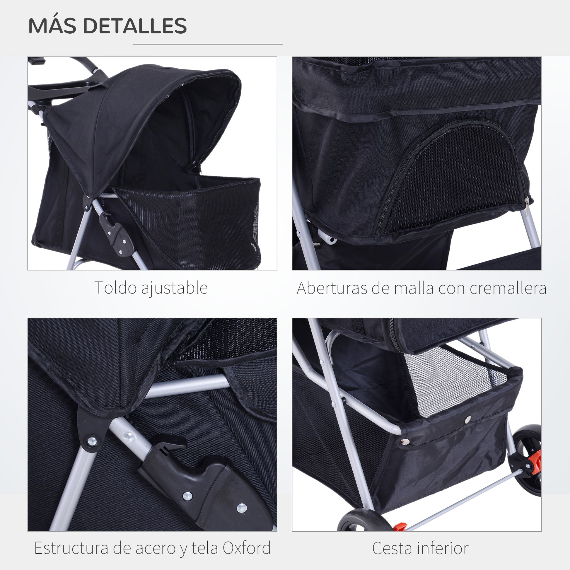 O Carrinho para Animais de Estimação Dobrável em preto é perfeito para levar o seu animal de estimação a passear com conforto e segurança. Feito com estrutura de aço resistente e tecido Oxford durável, este carrinho é prático e funcional.
