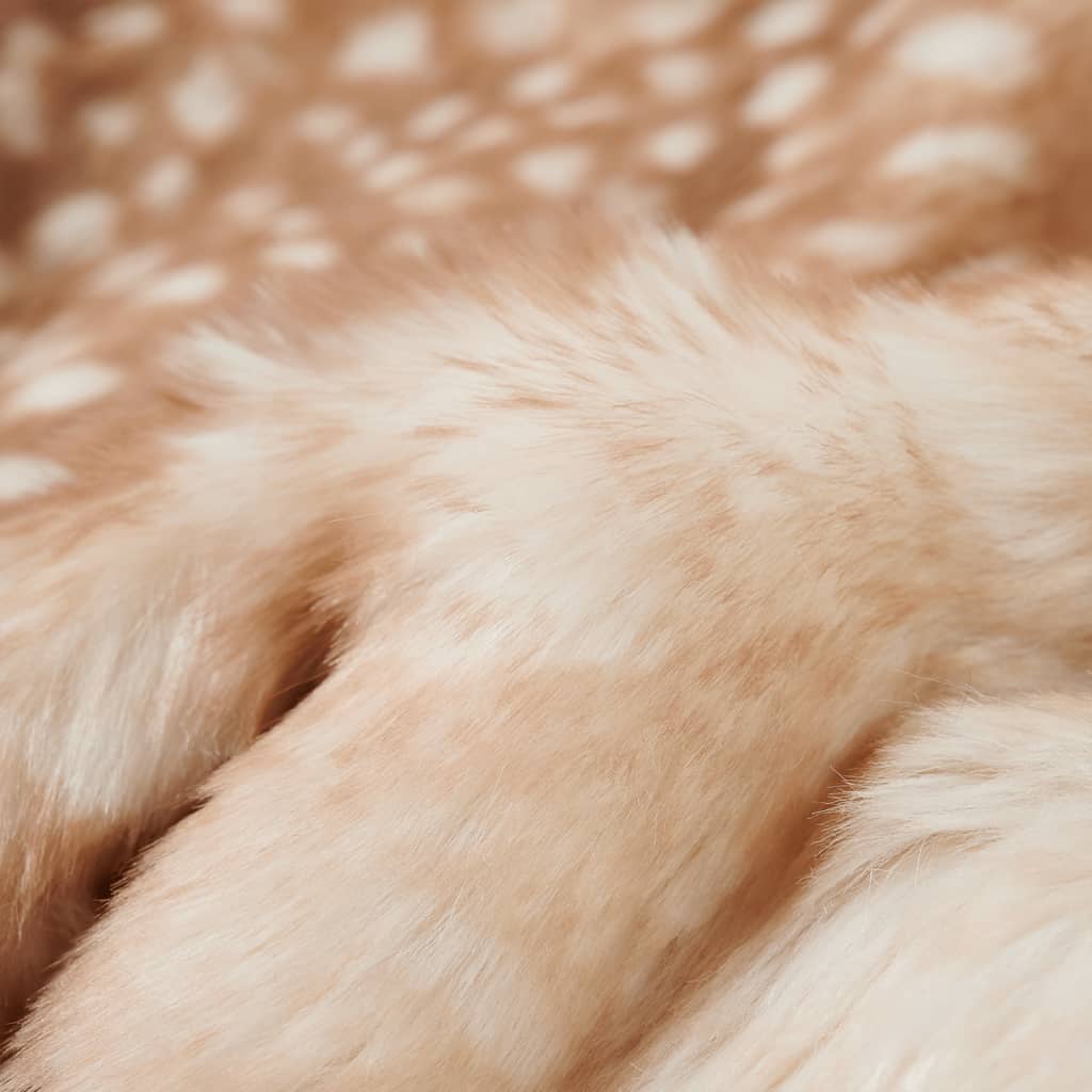 Este casaco para crianças em pelo sintético possui uma gola virada, mangas compridas e um fecho de correr. Este casaco de manga comprida para criança apresenta um padrão de manchas de cervo por toda a parte. O casaco infantil é feito de um material macio que inclui poliéster e algodão, o que o torna quente e confortável.