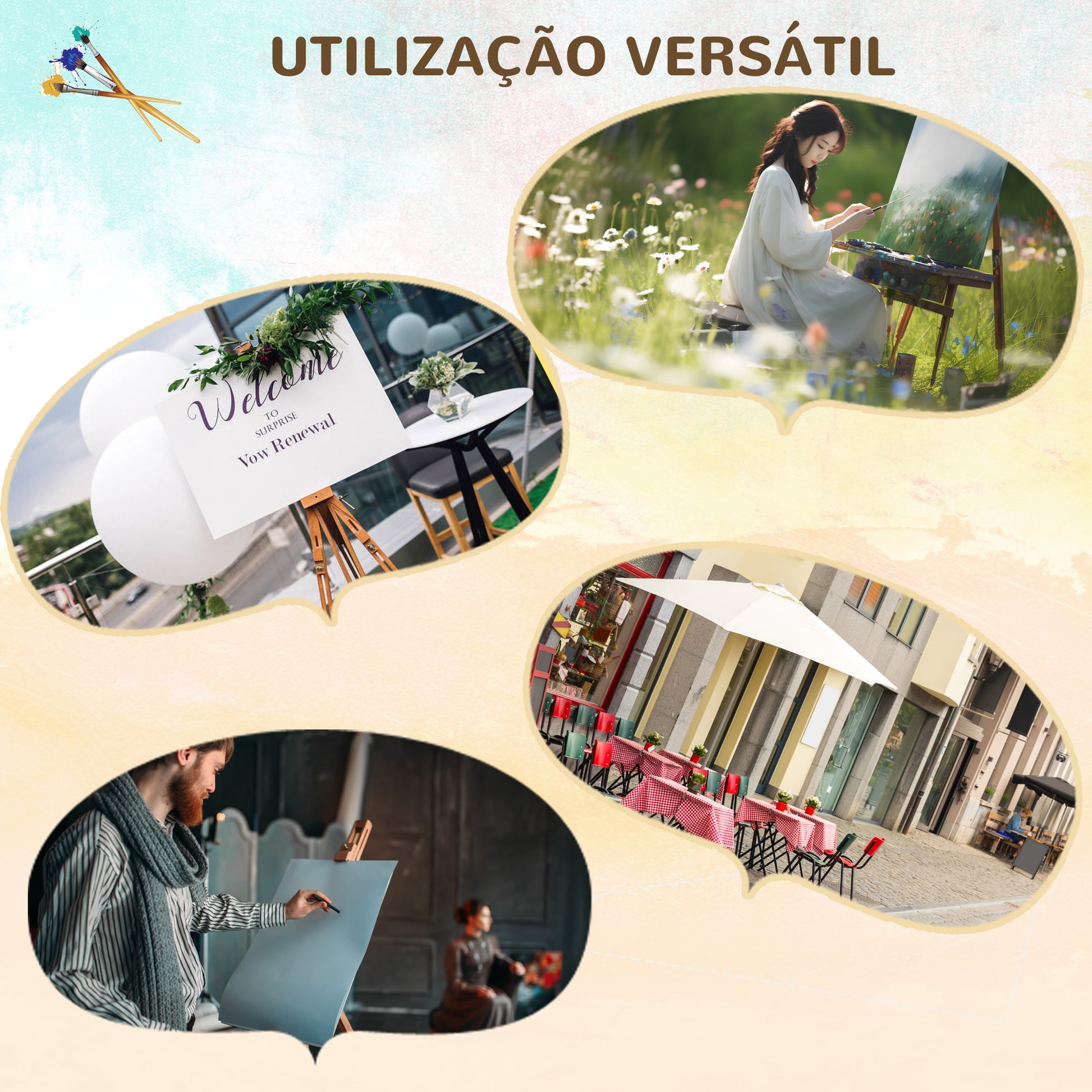 Cavalete de Pintura Dobrável em Madeira Natural 93x84x183 cm