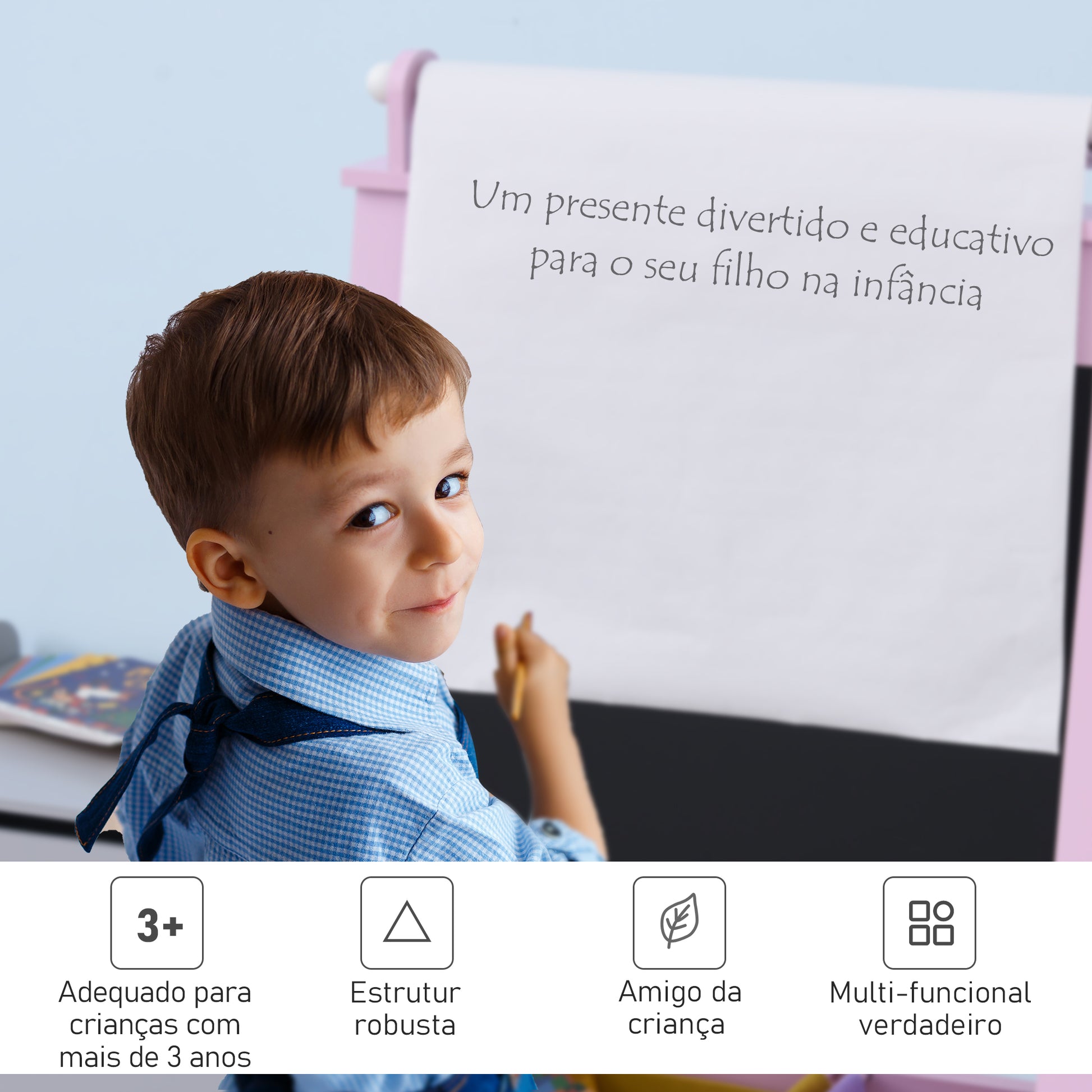 Deixe a criatividade fluir com este cavalete infantil 3 em 1 de cor rosa, perfeito para dar asas à imaginação das crianças.
