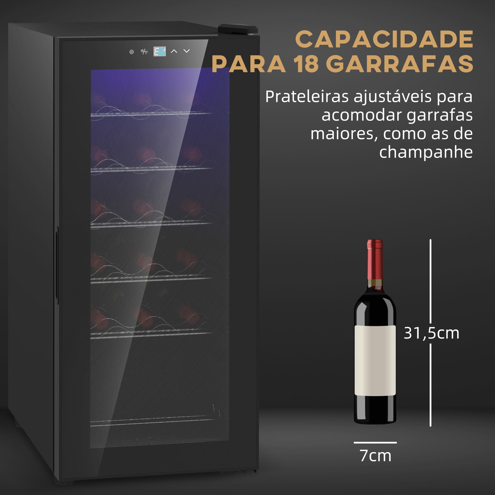 Garrafeira com Sistema de Refrigeração - 18 Garrafas Preto 34,5x45x78 cm