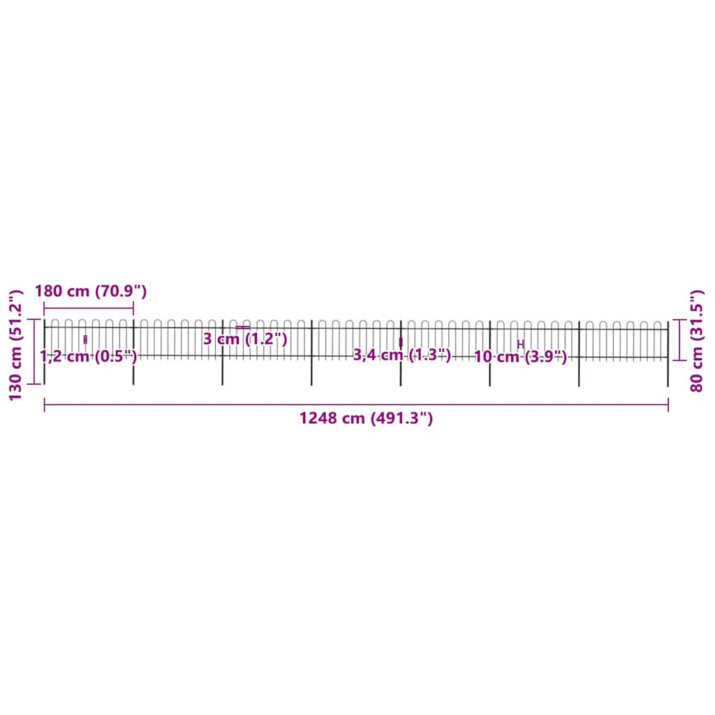 Cerca de jardim com arco superior em aço 1248x150 cm preta