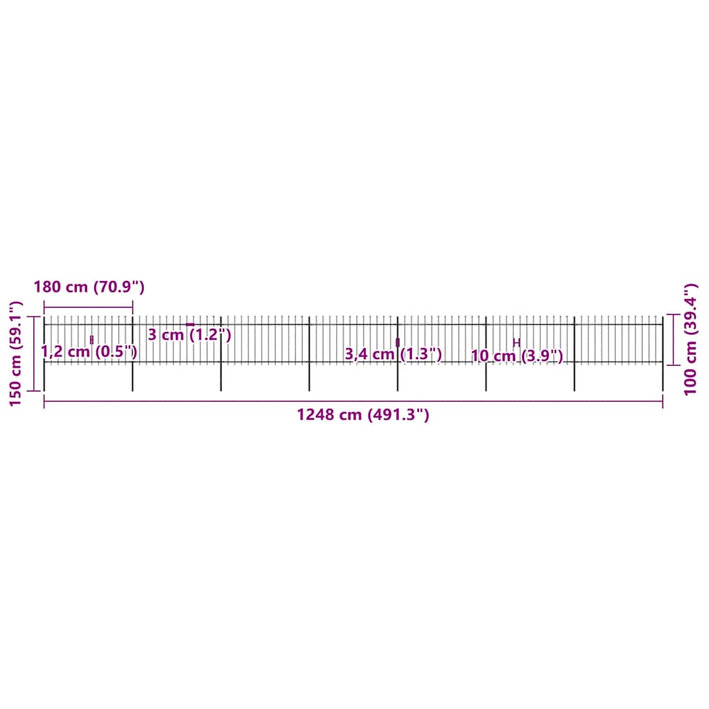 Cerca de jardim com ponta de lança em aço 1248x150 cm, preta