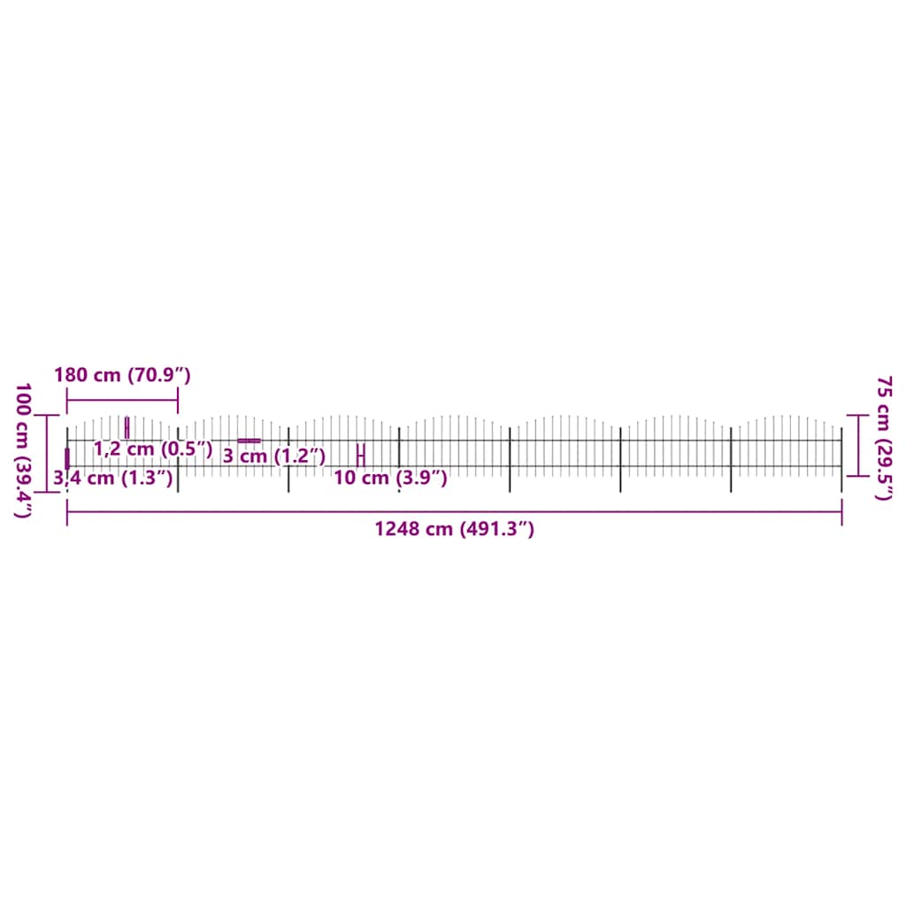 Cerca de jardim com topo em forma de lança em aço 1248x175 cm, preta