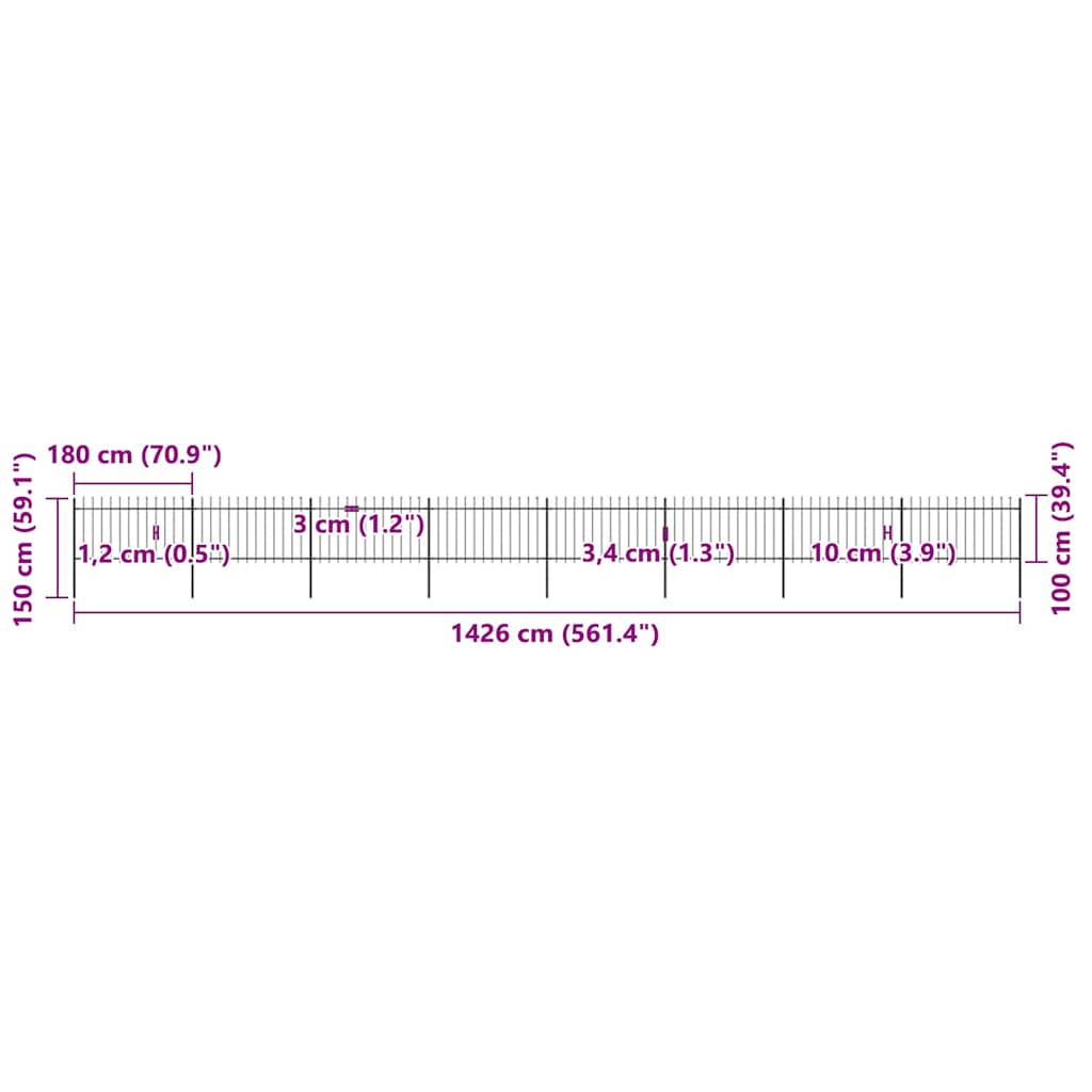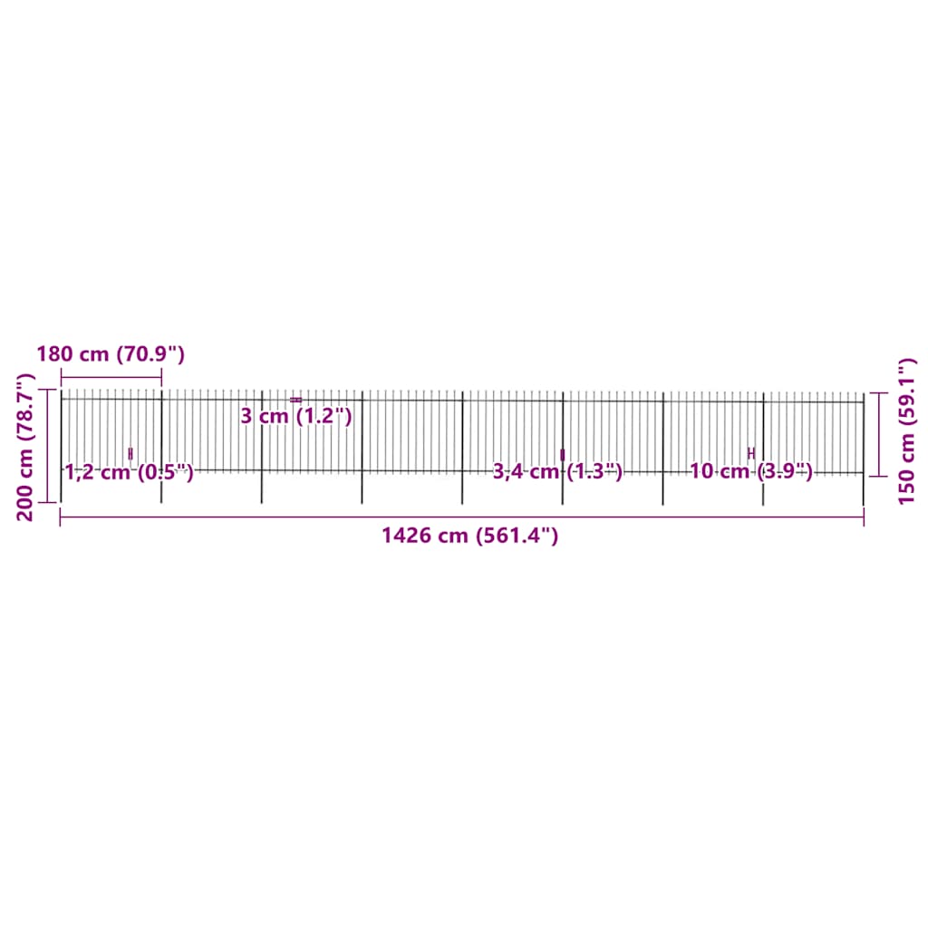 Cerca de jardim com topo em forma de lança em aço 1426x150 cm, preta