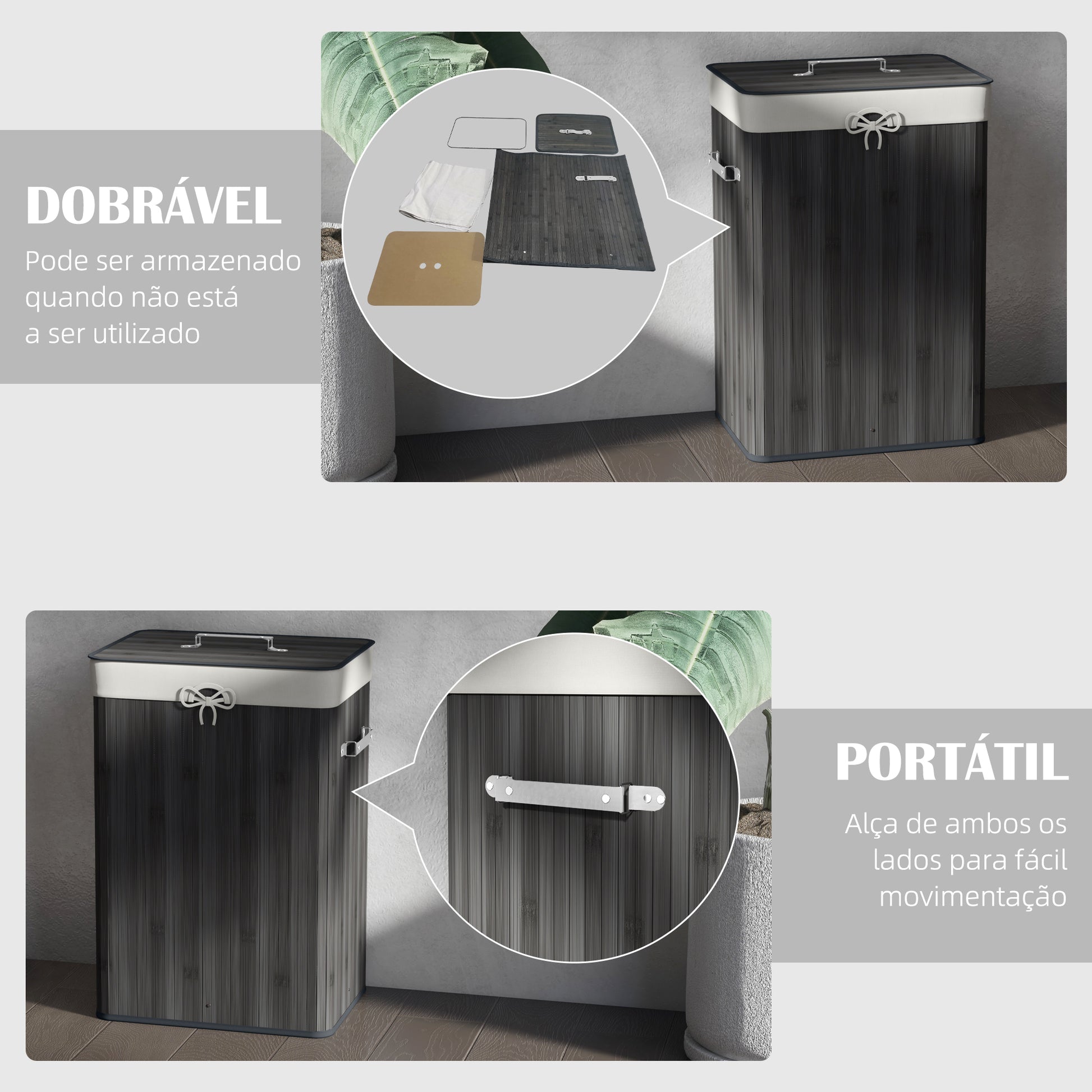 Cesto de Roupa de Bambu Dobrável – 40x30x60 cm – Cinzento
