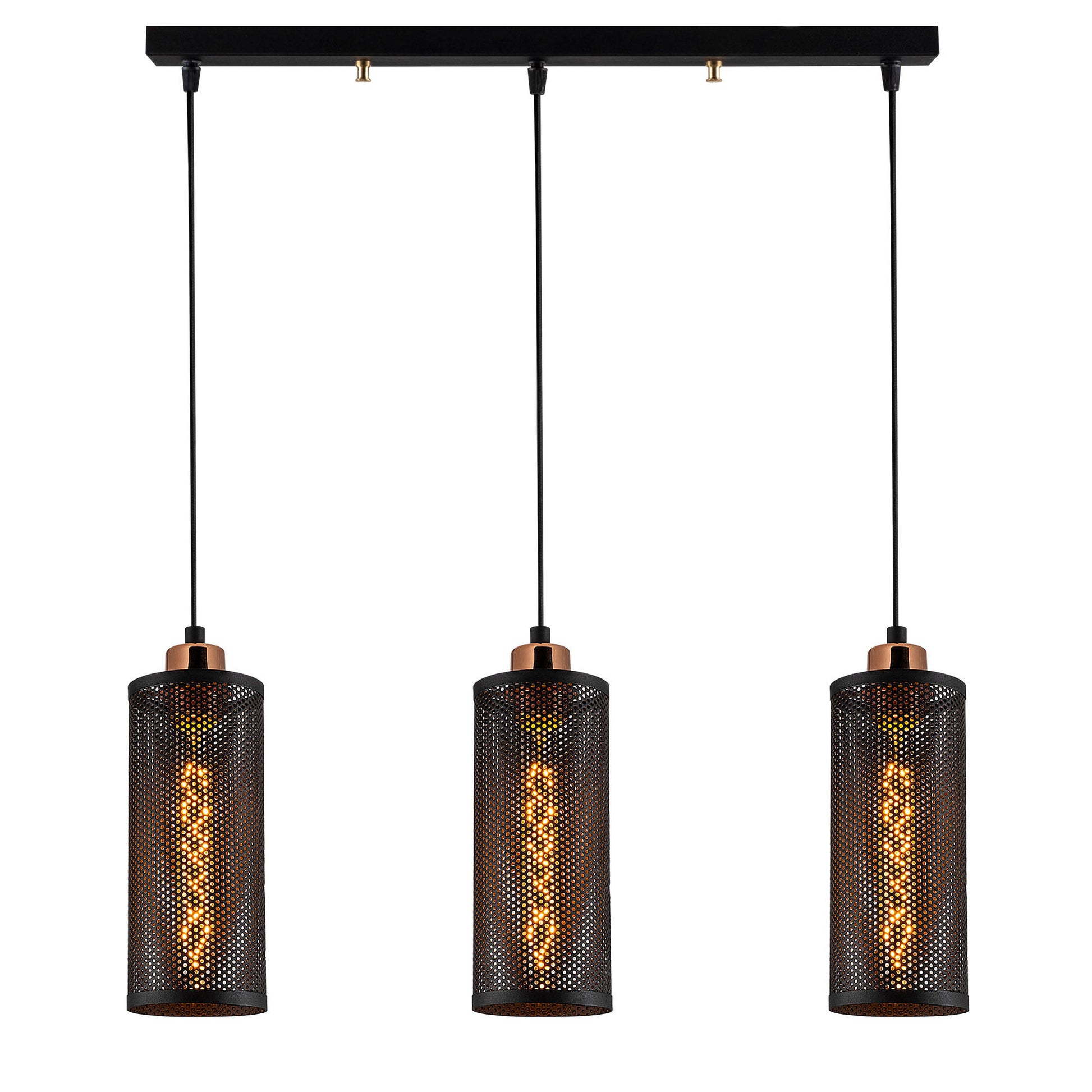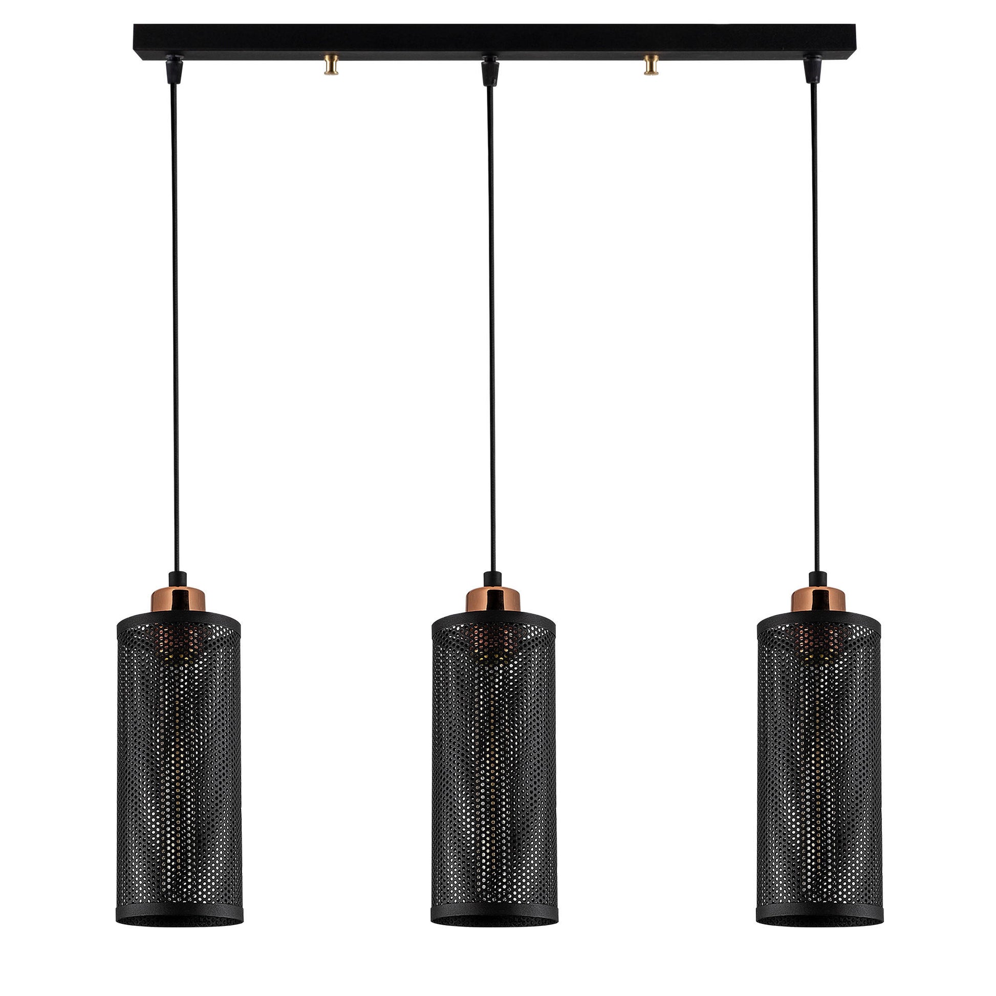 Candeeiro de Teto elegante em preto e bronze, 60 x 10 cm, altura 116 cm | Ajustável, corpo de metal, 3 x E27 máx. 40 W | Design escandinavo industrial moderno
