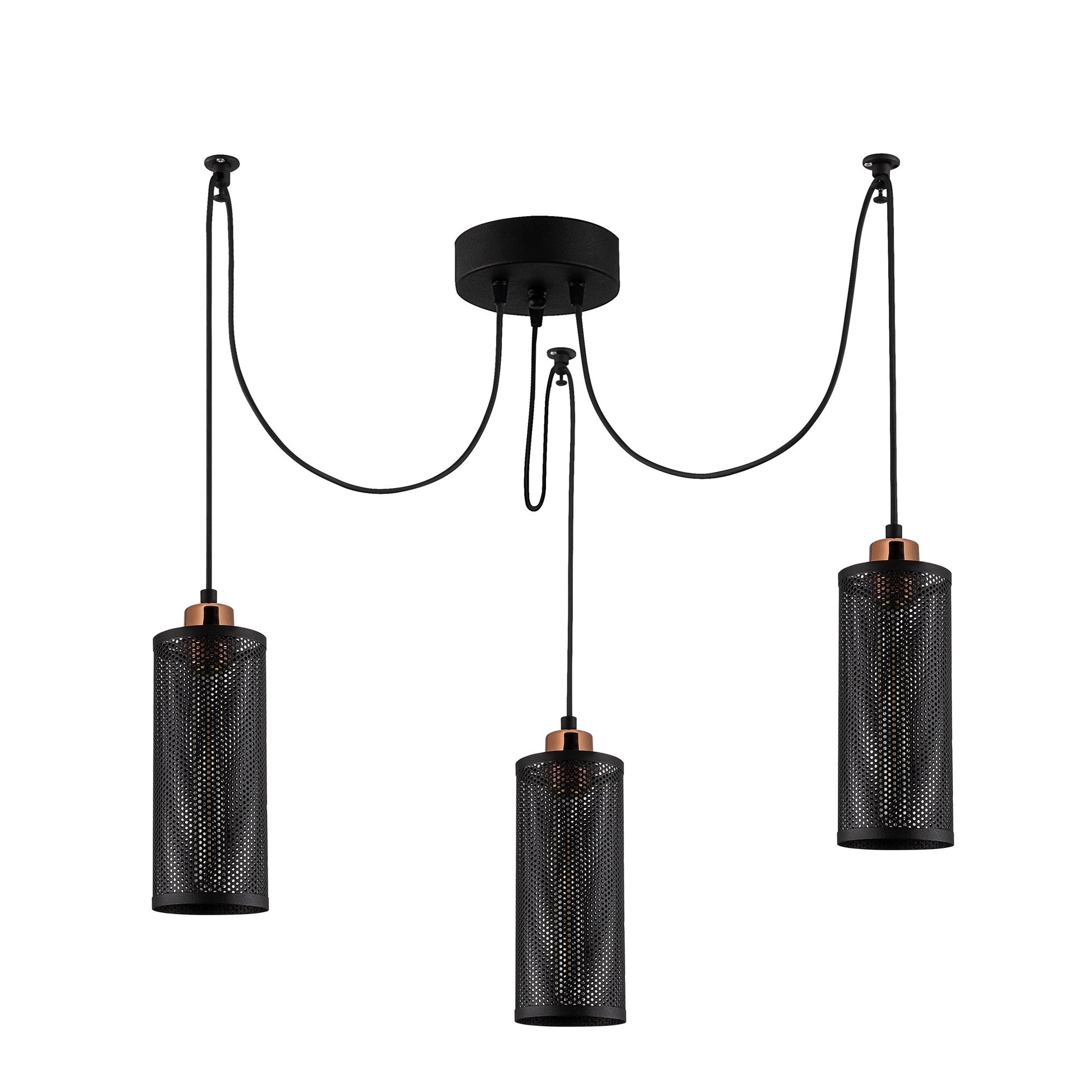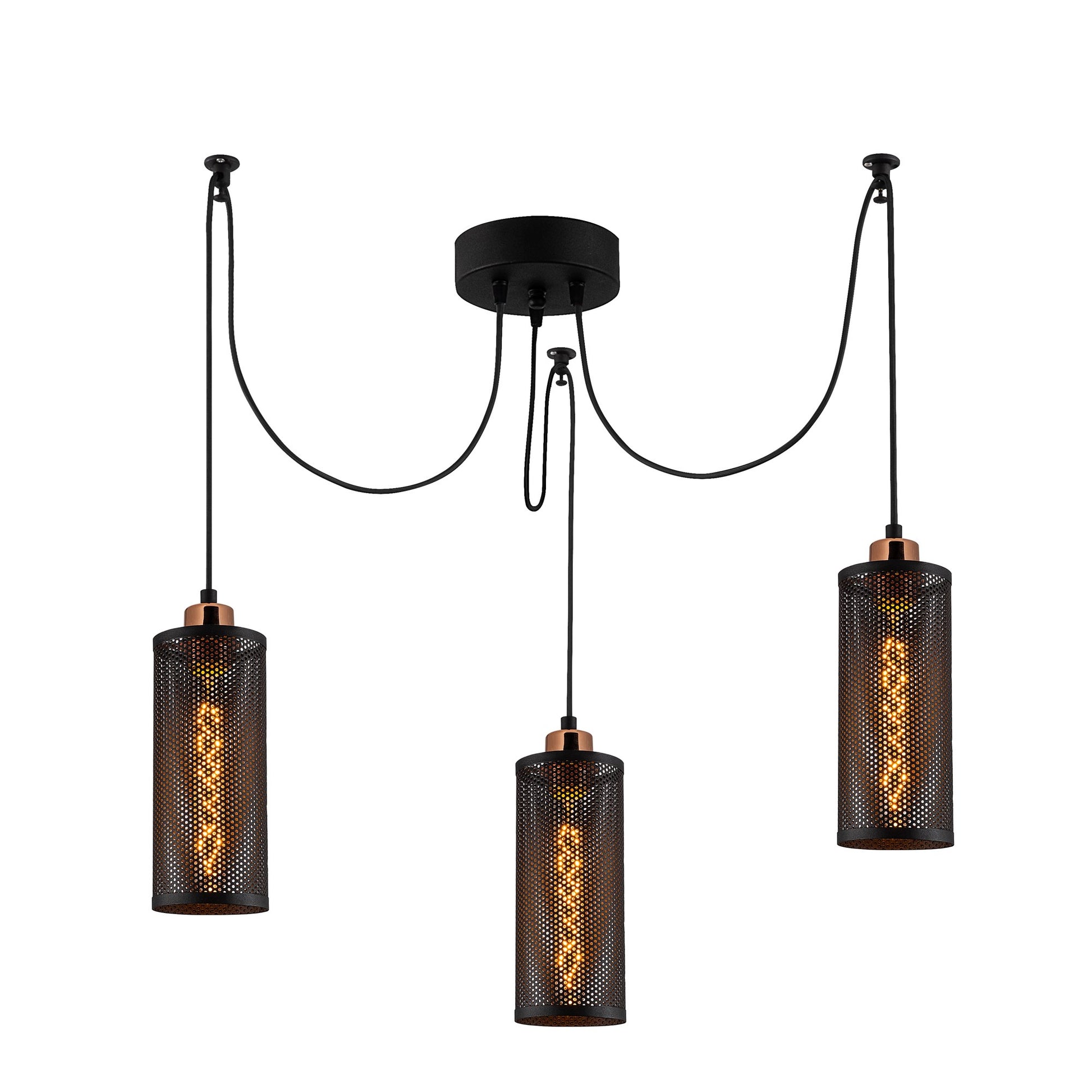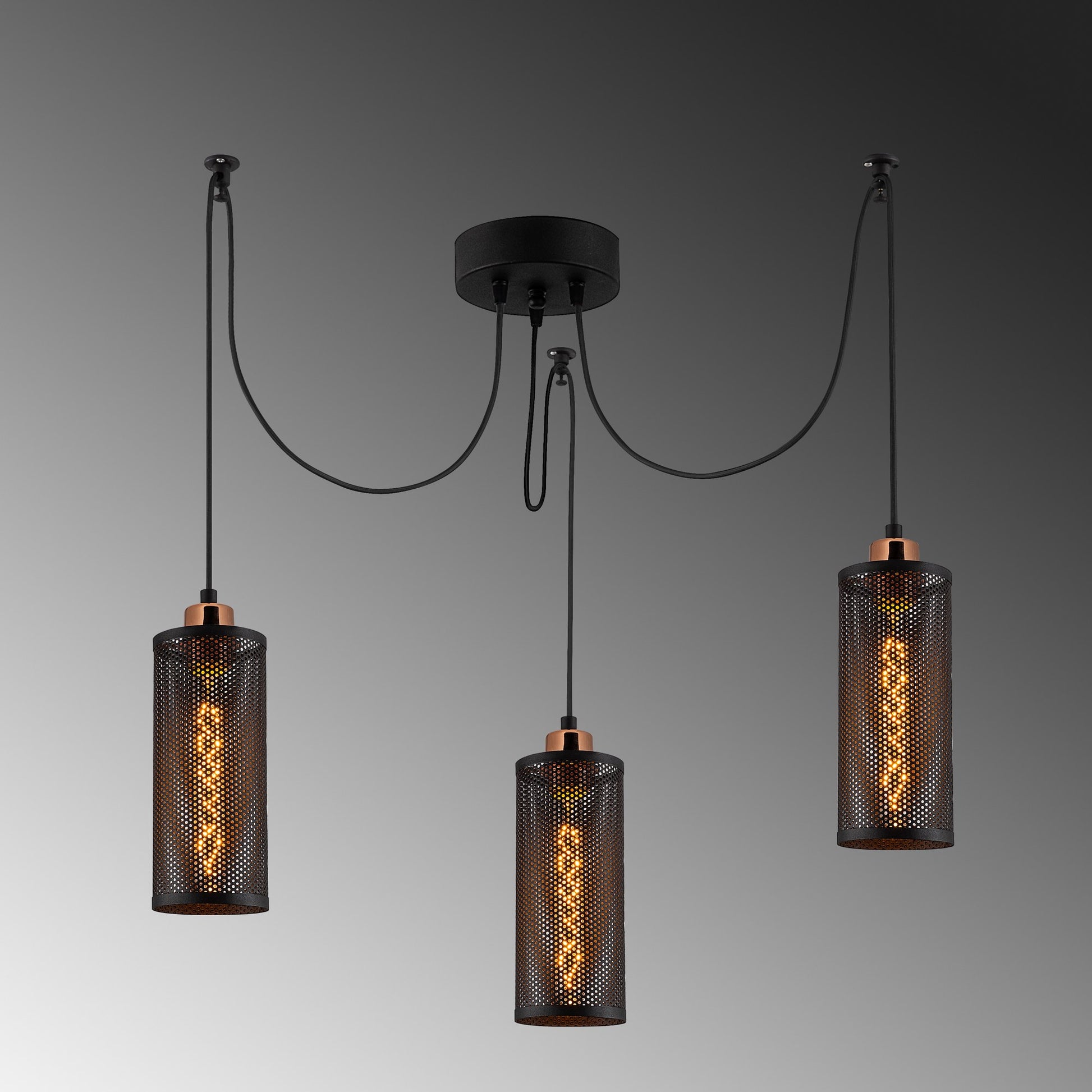 Candeeiro de Teto Industrial Moderno, Preto e Bronze, 100 x 10 cm, Altura Ajustável 114 cm, 3 x E27 Máx. 40 W, Iluminação Elegante para Casa e Escritório