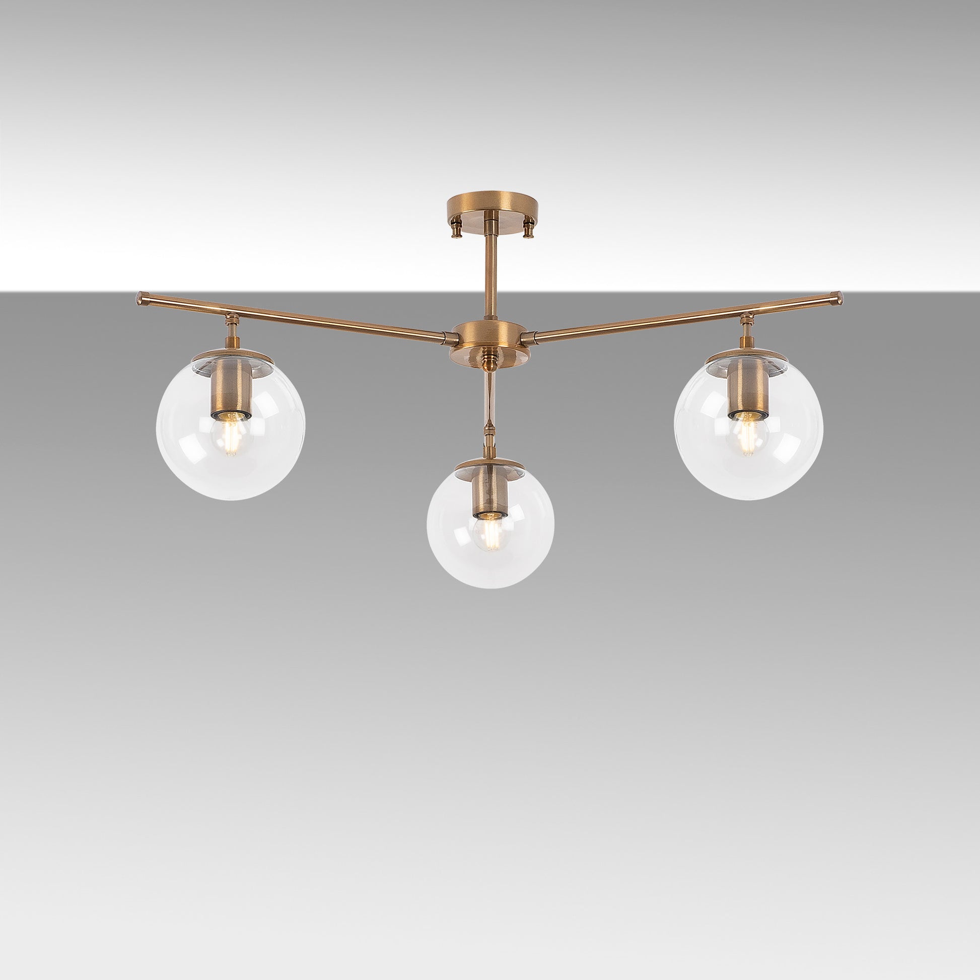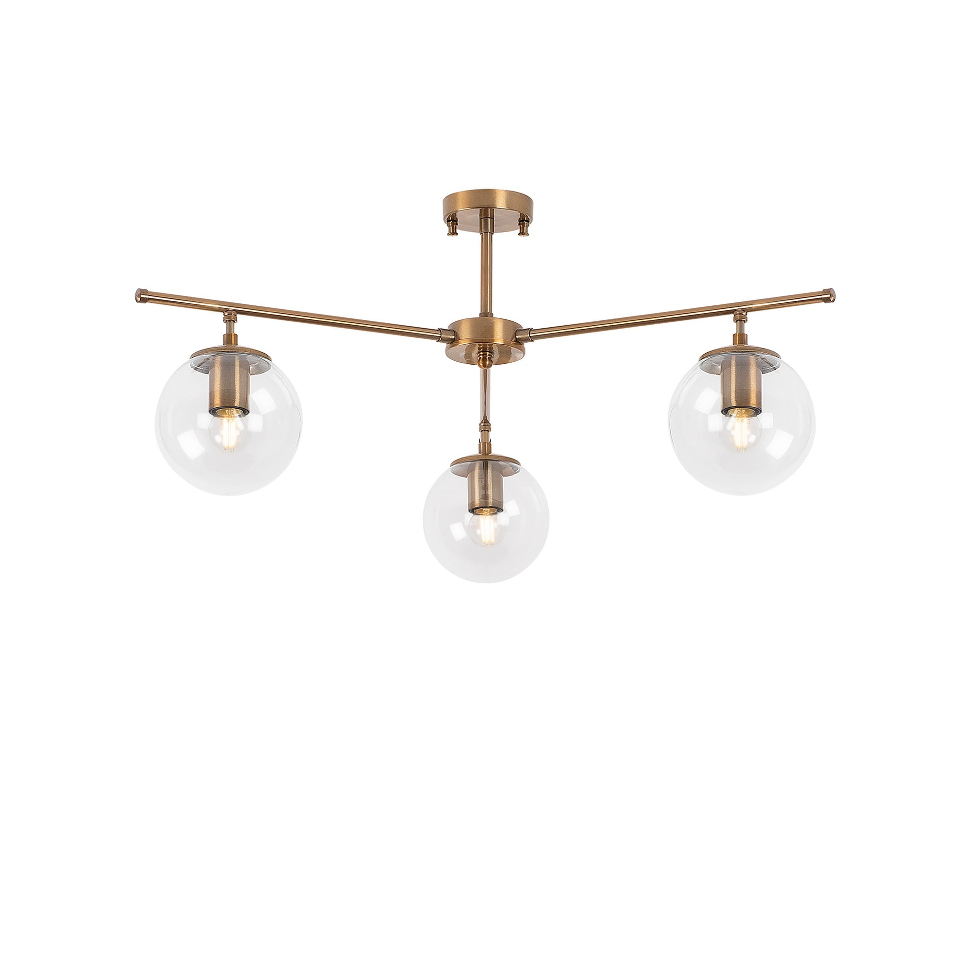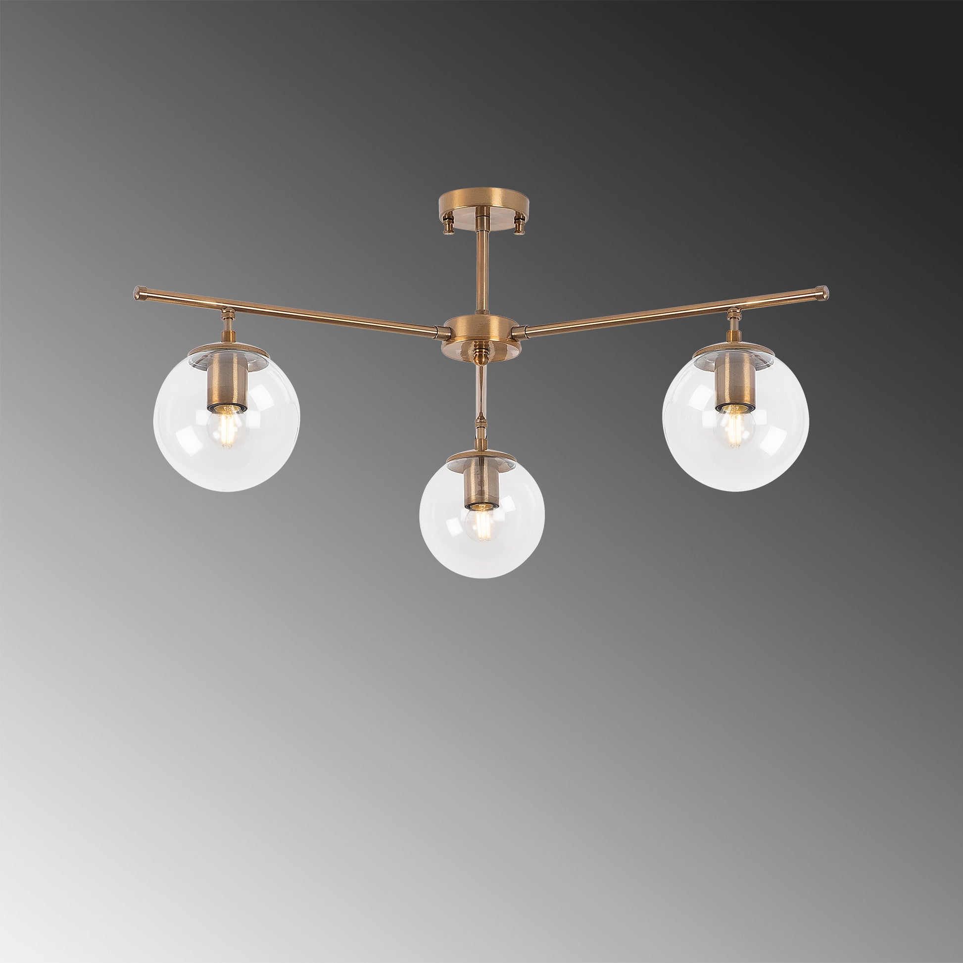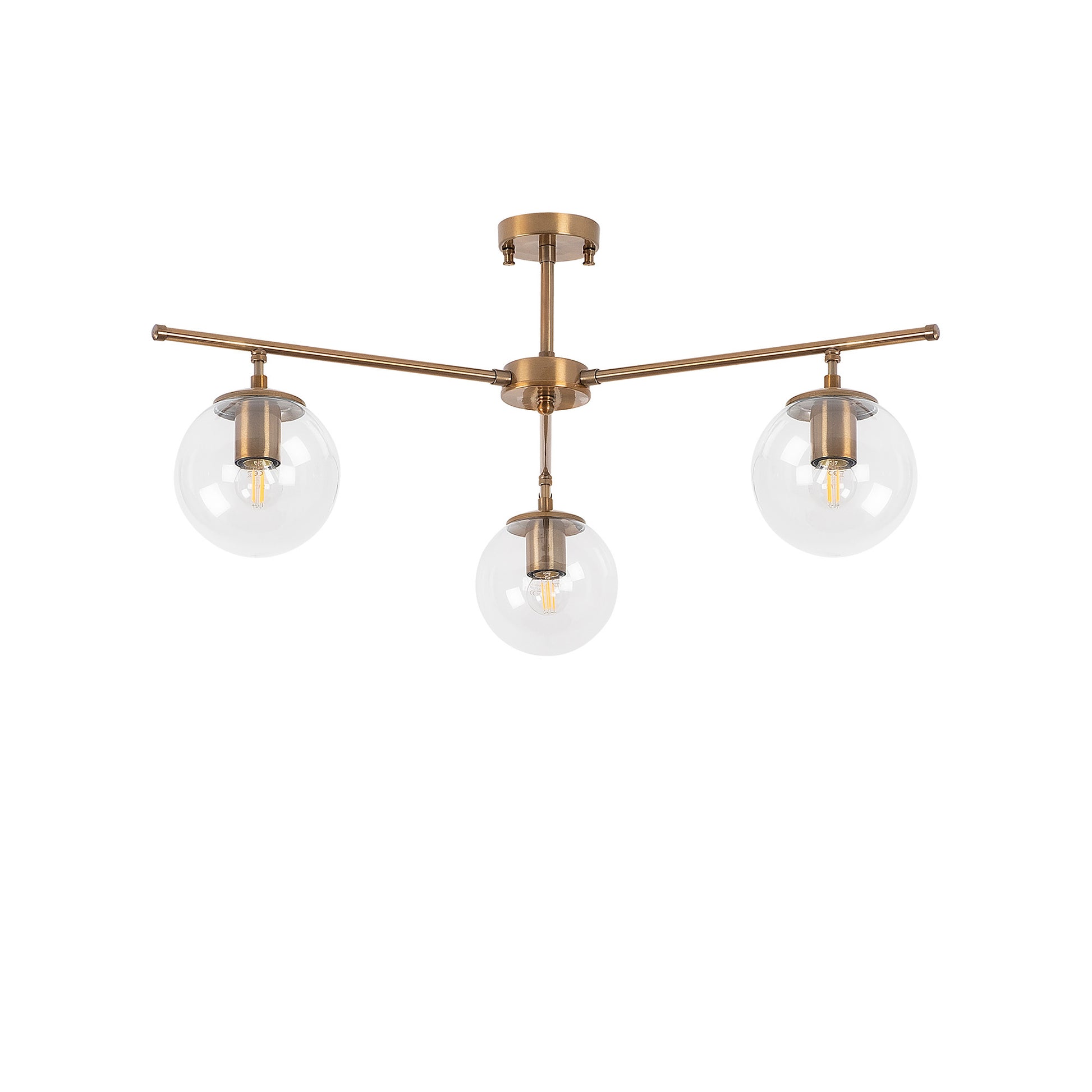 Candeeiro de Teto Vintage Elegante, Corpo em Metal e Tampa em Vidro, 70 x 70 cm, 39 cm de Altura | 3 Soquetes E14, Acabamento em Cobre | Glamour Moderno para Decoração de Casa