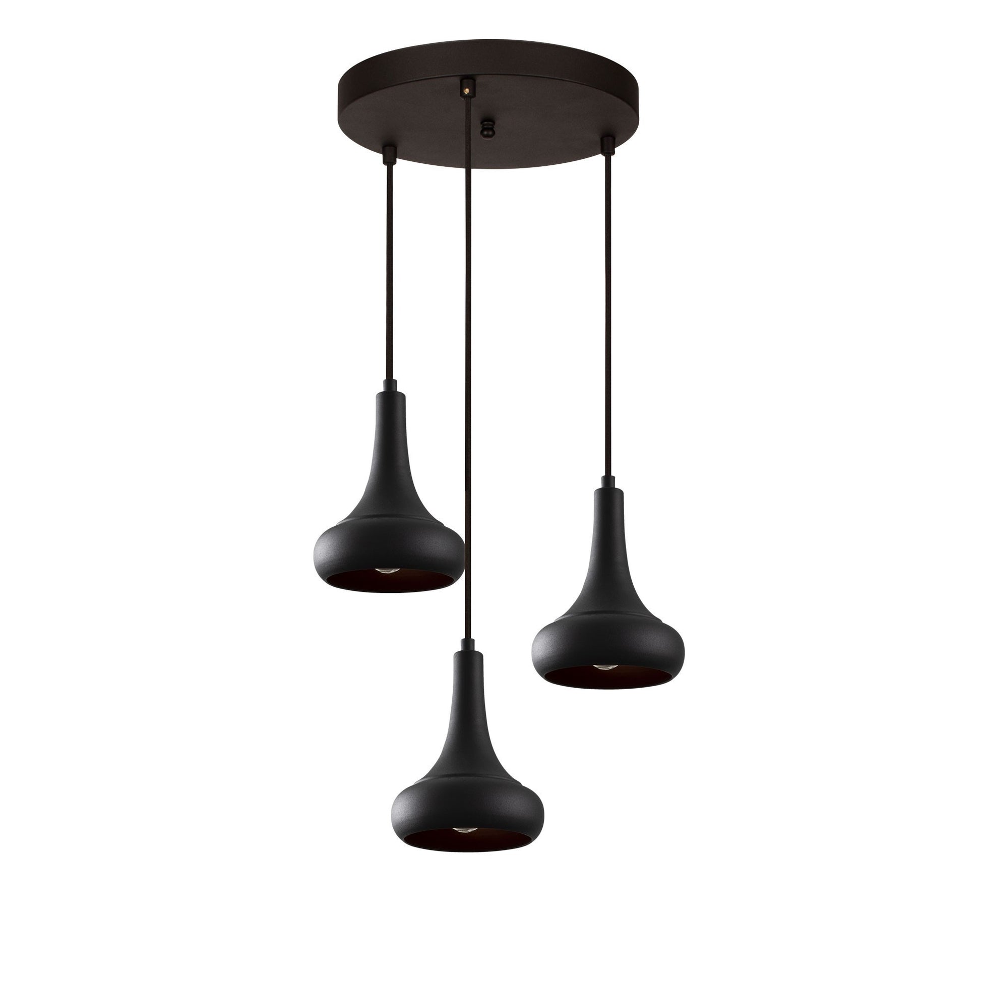 Candeeiro de Teto Industrial Moderno, Metal Preto, 40 cm de Diâmetro, 114 cm de Altura | 3 Soquetes E27, Cabo de 90 cm | Iluminação Elegante para Casa e Escritório