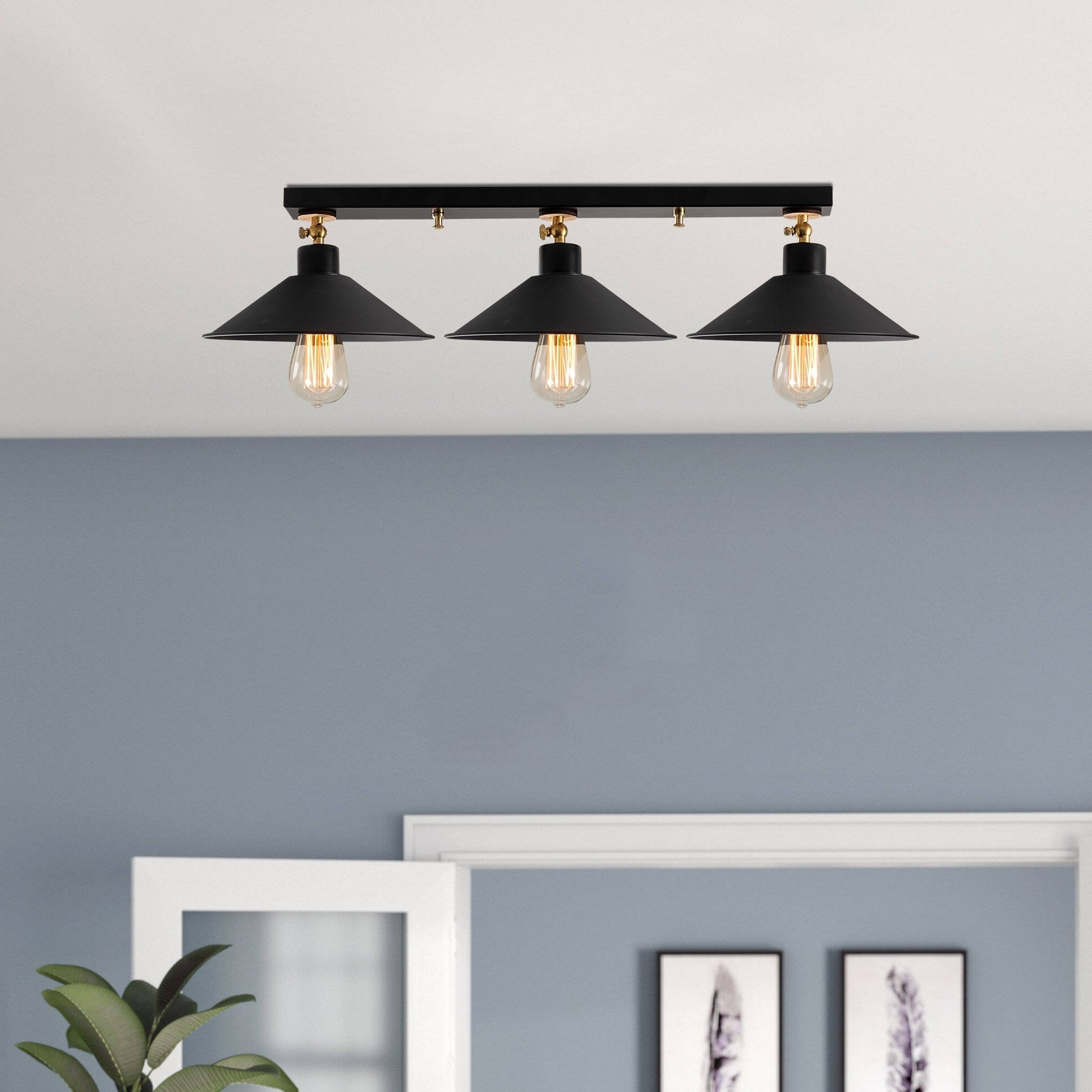 Candeeiro de Teto Industrial Moderno, Corpo em Metal Preto, 80 cm de Diâmetro, 17 cm de Altura | 3 x E27 Máx. 40 W | Iluminação Elegante para Decoração Escandinava