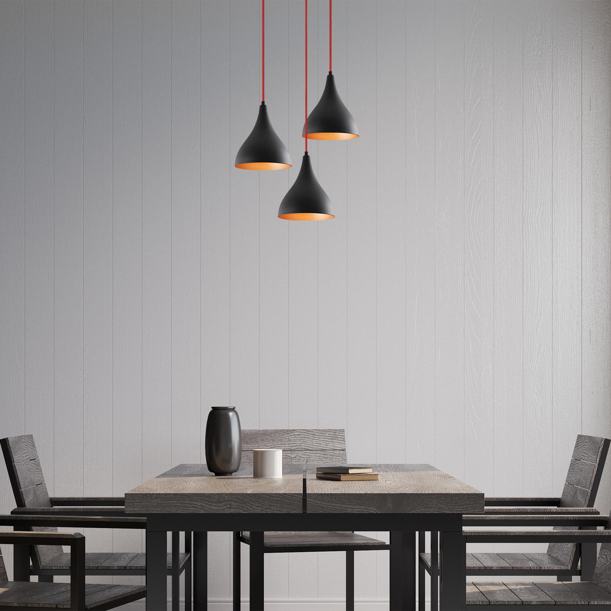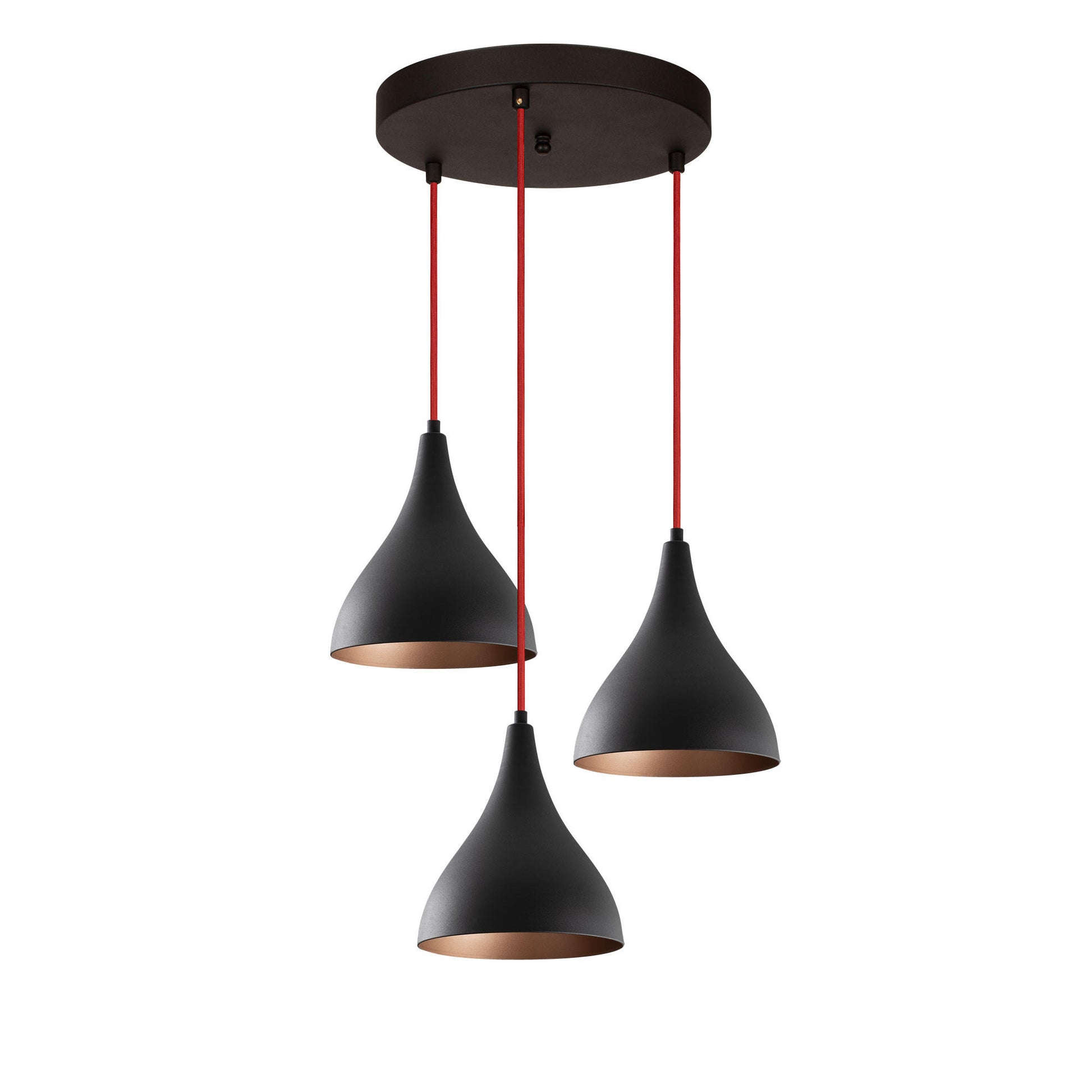 Candeeiro de Teto Industrial Moderno, Preto e Vermelho, 46 cm de Diâmetro, 119 cm de Altura | Corpo em Metal, 3 Soquetes E27, Iluminação Elegante para Casa e Escritório