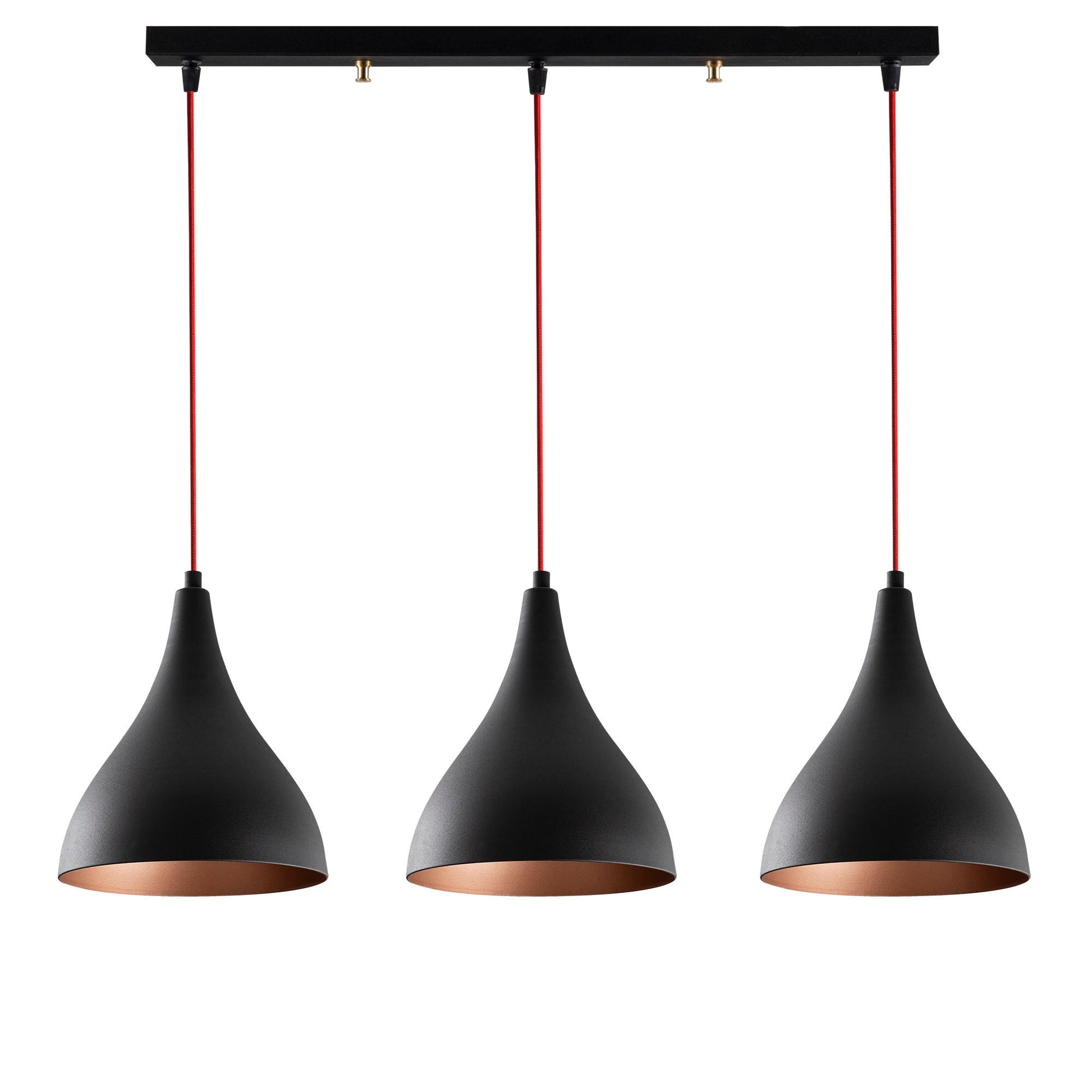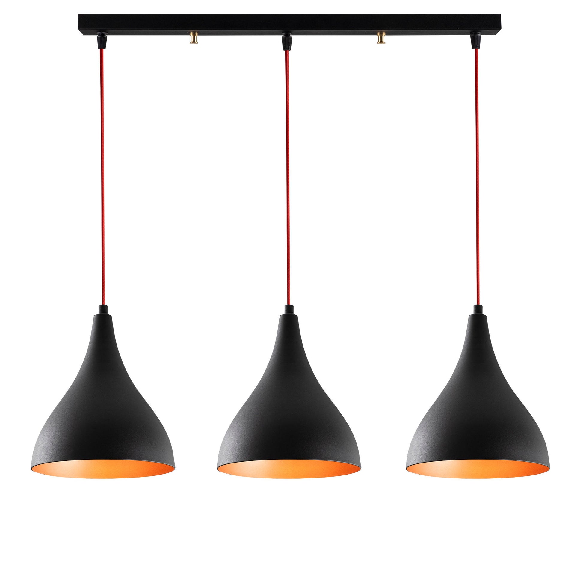 Candeeiro de Teto Industrial Moderno, Preto e Vermelho, 72 x 22 cm, Altura 118 cm | Corpo de Metal, 3 Soquetes E27, Iluminação Elegante para Casa e Escritório