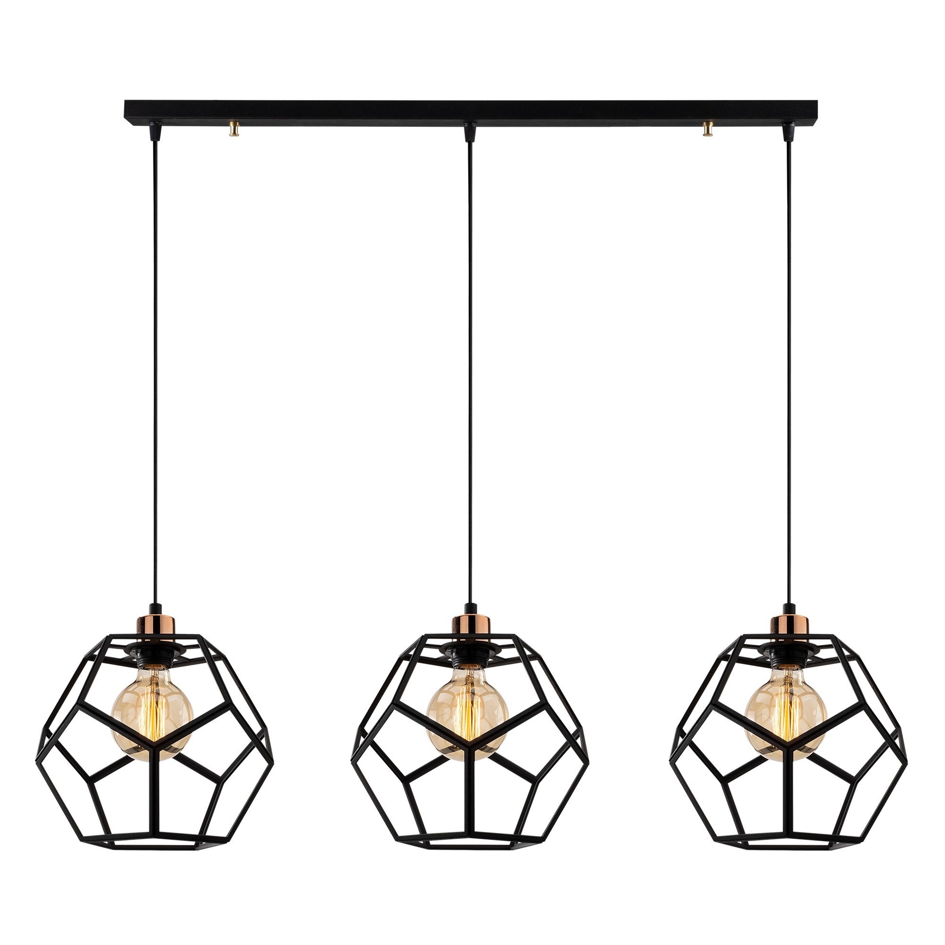 Candeeiro de Teto Industrial, Preto e Bronze, 96 x 26 cm, Altura Ajustável 120 cm, 3 x E27 Máx. 40 W, Corpo de Metal Elegante, Perfeito para Espaços Modernos
