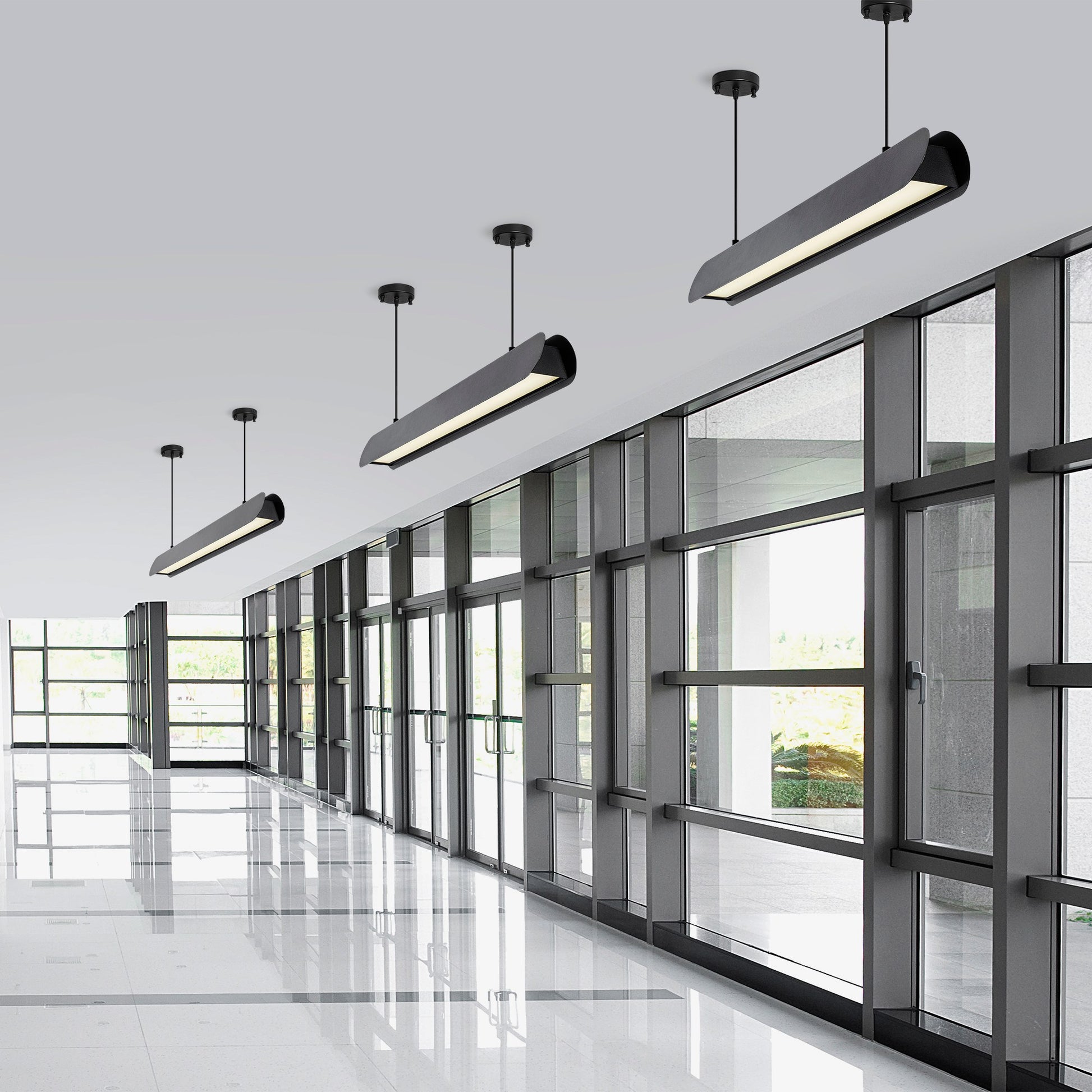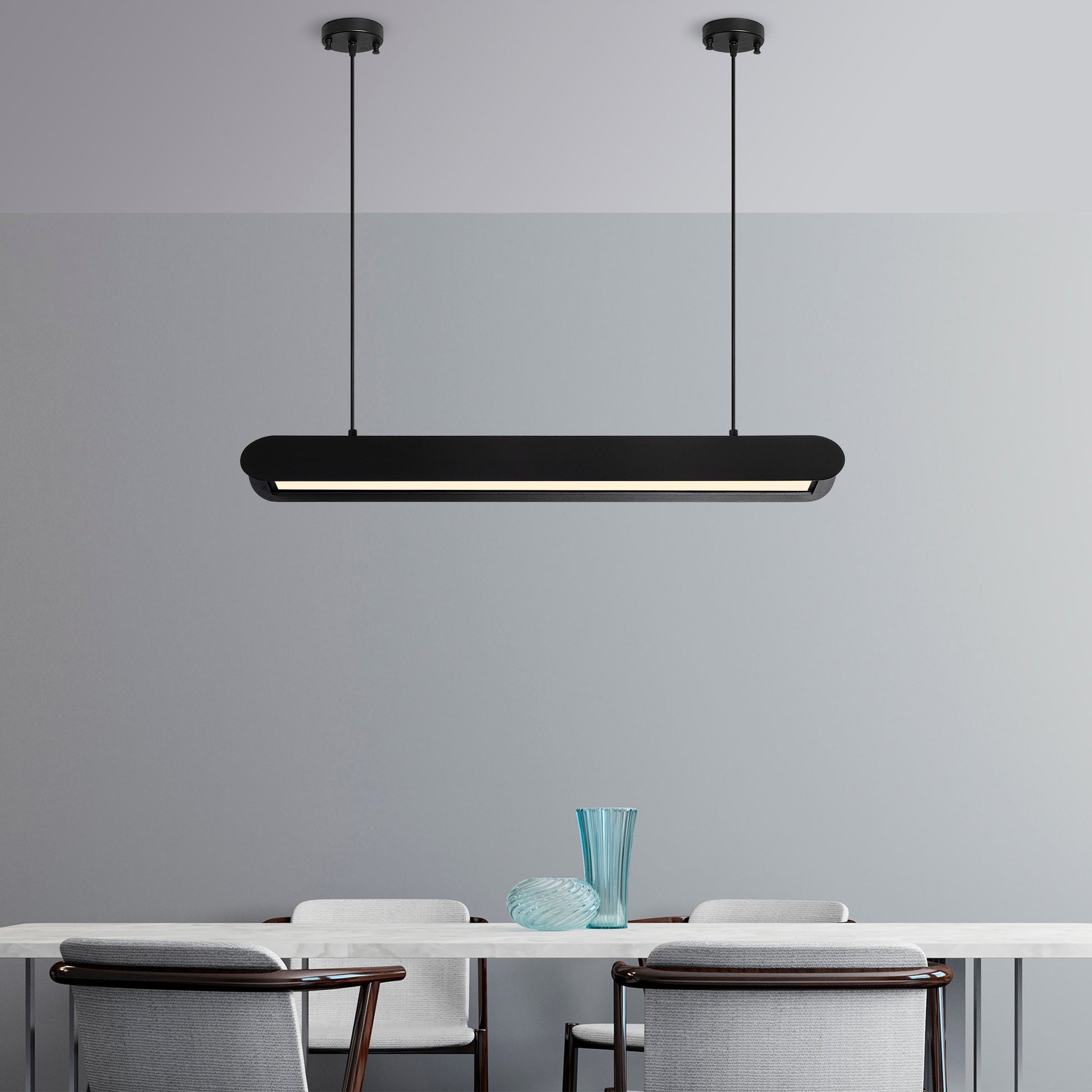 Candeeiro de Teto Preto Elegante, Corpo em Metal, 109 cm de Largura, Altura Ajustável (25-130 cm) | LED SMD 30 W, IP20, Interruptor Liga/Desliga | Perfeito para Espaços Modernos