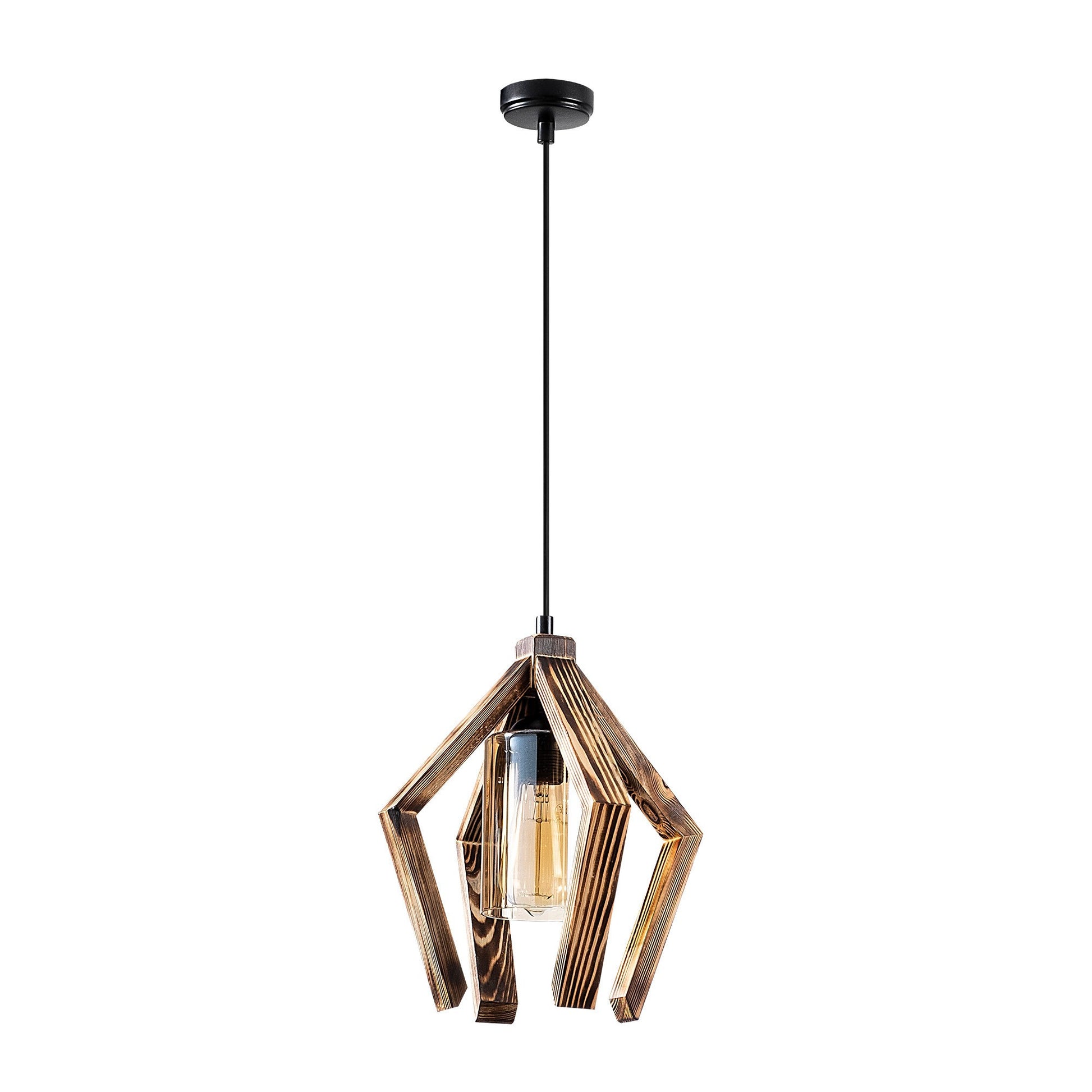 Candeeiro de Teto Elegante de Madeira, 28 x 28 cm, Altura 105 cm | Acabamento Preto e Madeira, Soquete E27, Máx. 40 W | Design Rústico Moderno para Casa e Sala de Jantar