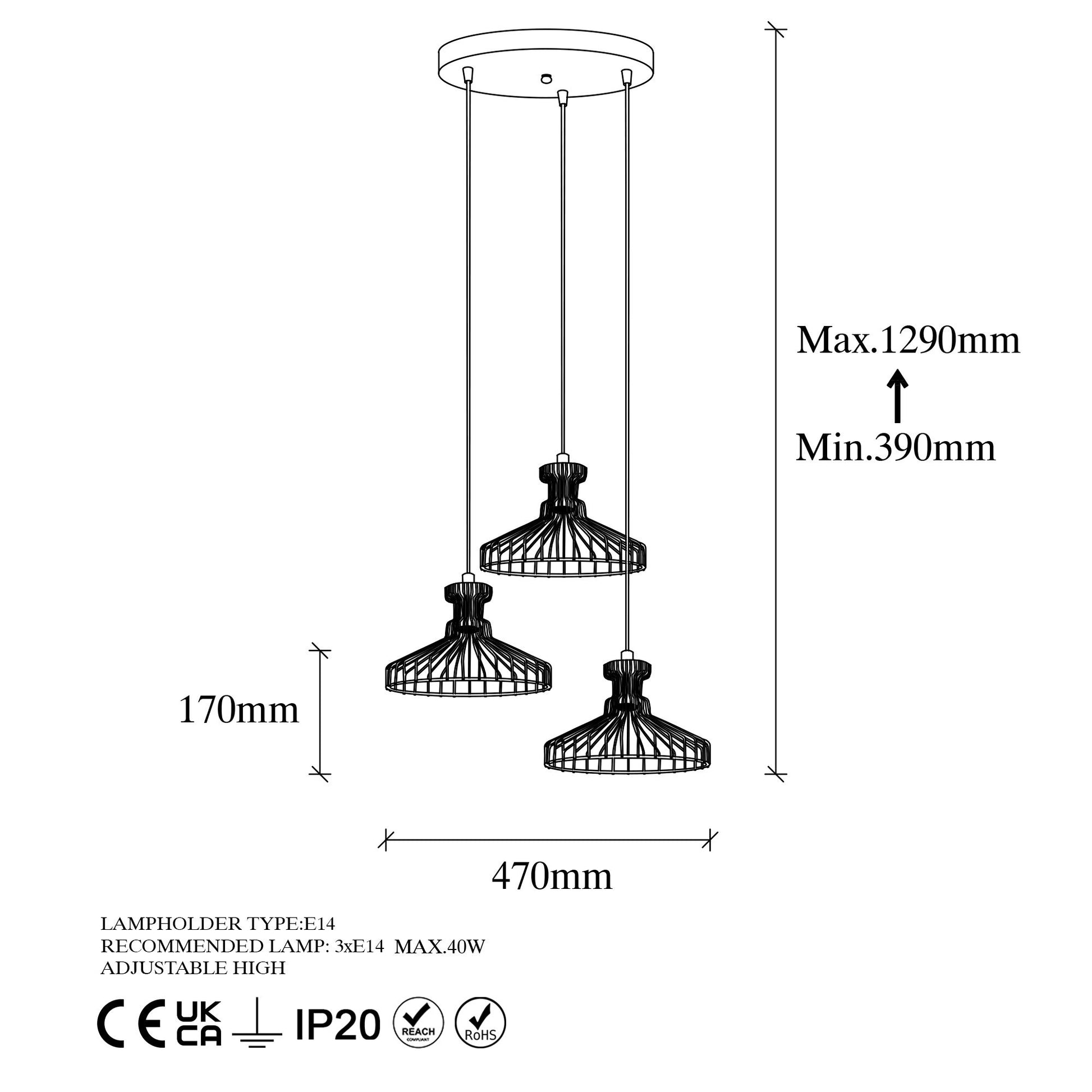 - Tipo de soquete: 3 x E27 Máx 40W lâmpadas (não incluídas)